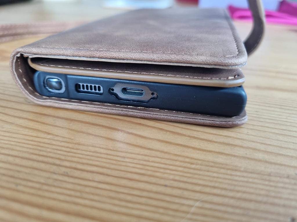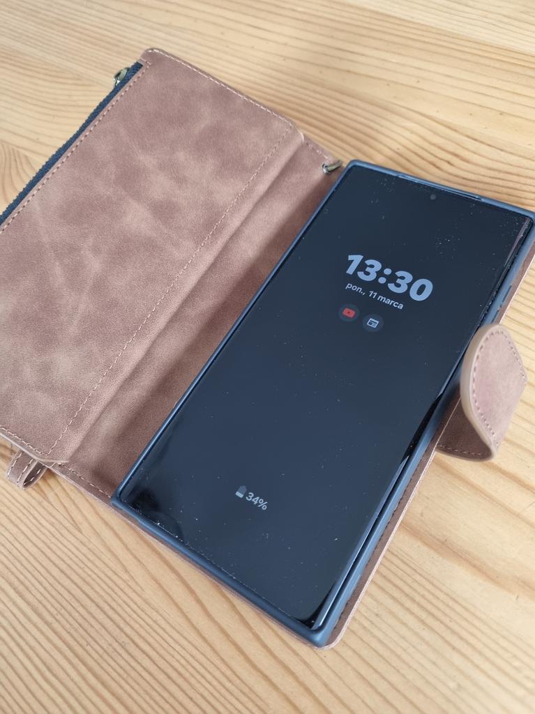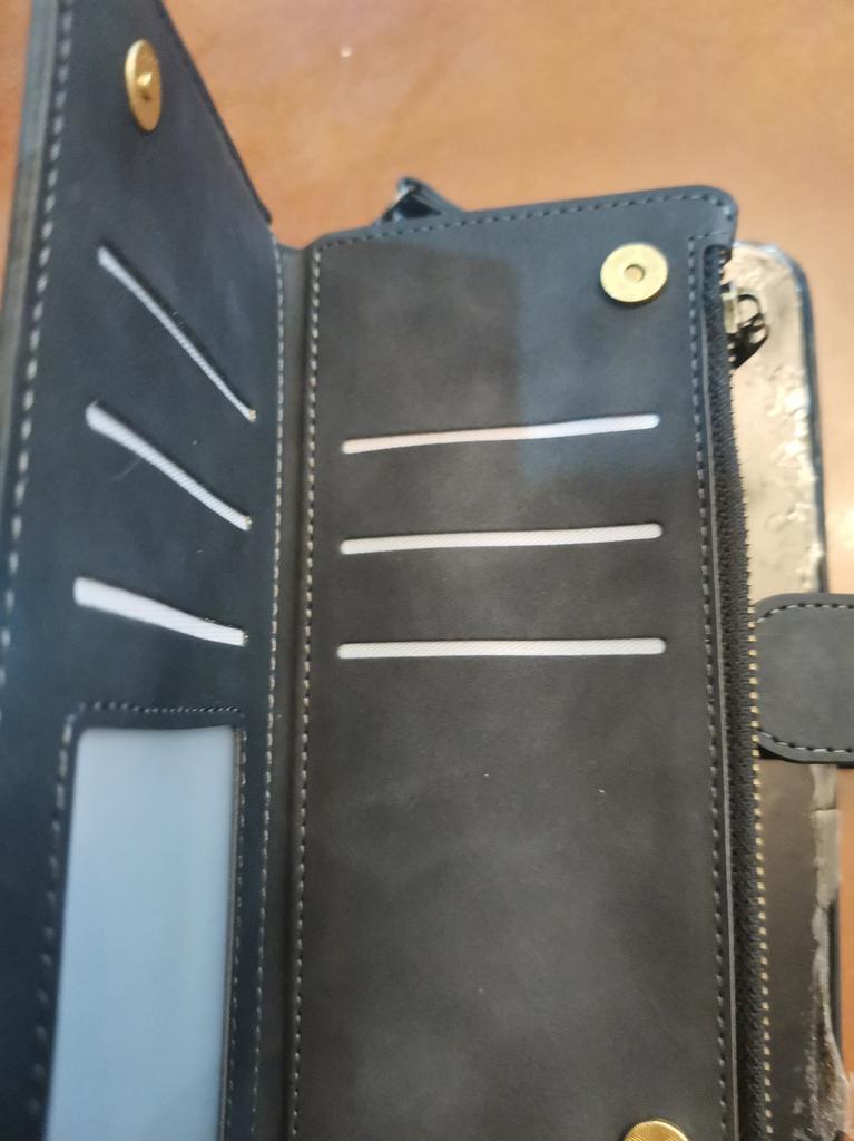 A impressão geral é boa, slots muito estreitos para cartões de plástico, o registro do veículo não cabe, o zíper é rígido. O celular (S22) se encaixa perfeitamente, todos os recortes para a câmera e o cabo de carregamento estão onde deveriam estar. tempo de espera muito longo