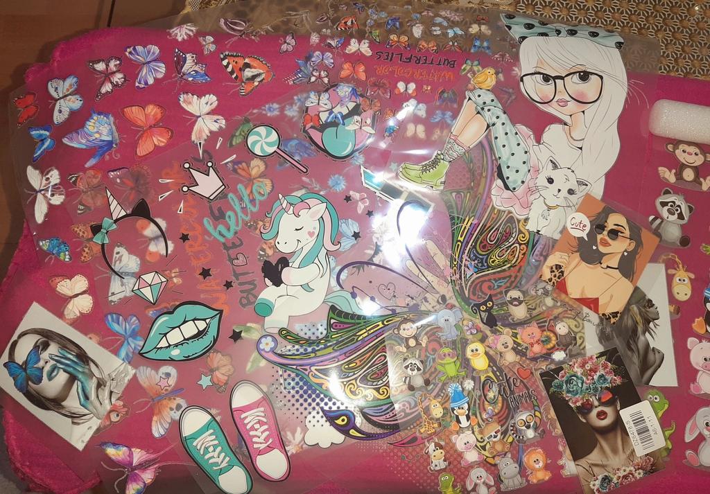 Pedi 22.06 recebi 13.07, os adesivos são bons, um grande e outro bem pequeno, não tentei colar, veio sem danos. Desculpe, eu não tinha um presente (((