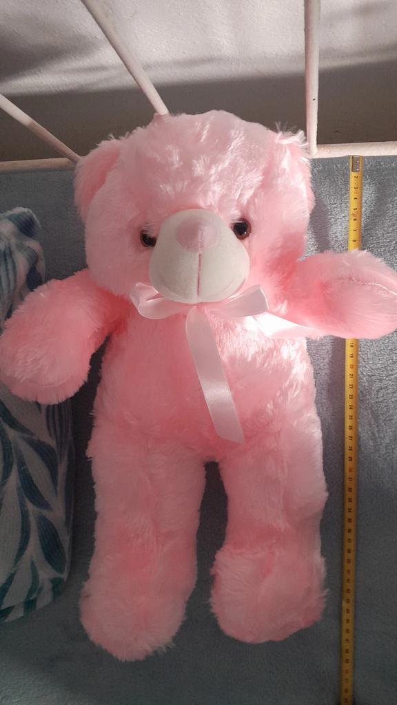 Nas fotos o produto parece bem maior na vida real o pelúcia de 50cm parece com o pequeno das fotos. Decepcionado com o tamanho, mas produto correto.