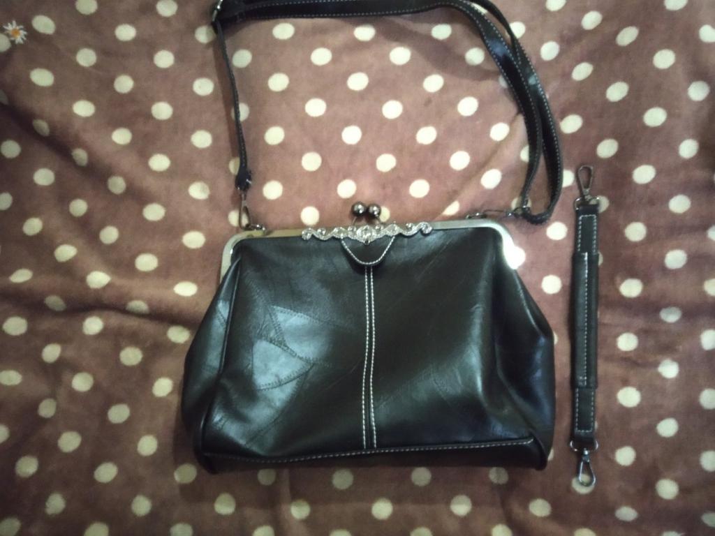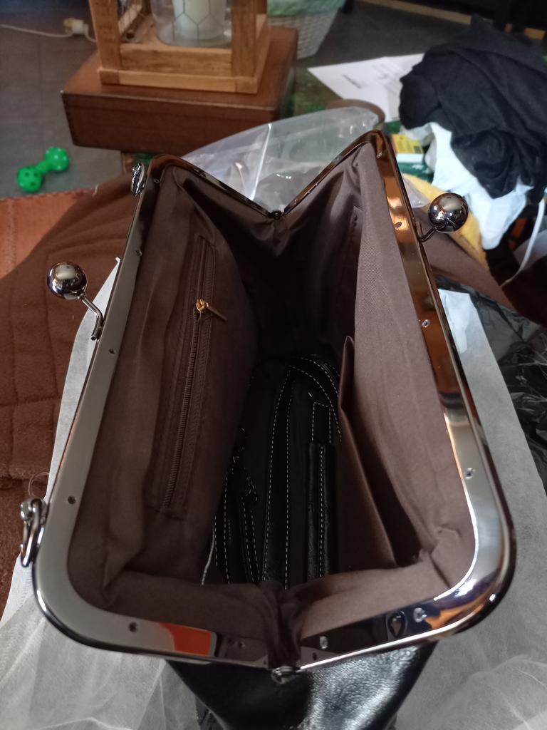 Bolsa aparente, apesar de não ser de couro, dá muito bem a imagem. Fecho de estilo antigo e interior com muitos bolsos. Eu vim com alça e alça destacáveis para carregar como quiser. Bem acabado. Eu recomendo. Obrigada.