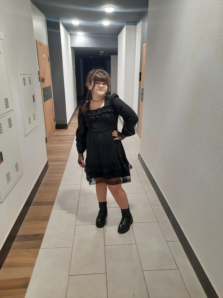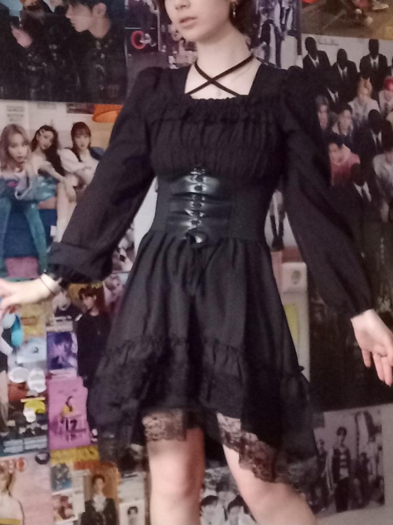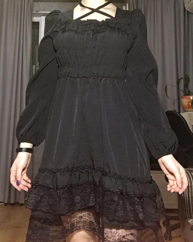 Novas mulheres góticas preto vestido de festa de fadas cruz gola quadrada lolita princesa vestido irregular bonito kawaii rendas babados vestido chique