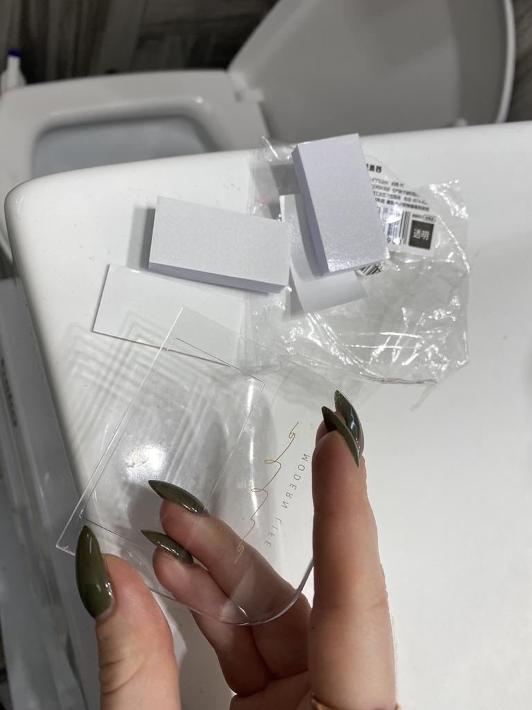 Super, tudo é como na foto👍💙 Facilmente preso à tampa do vaso sanitário. Mais tarde, colei do outro lado, descolei com facilidade, colei de novo e segurou perfeitamente.