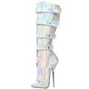 Botas de balé com salto super alto de 7 polegadas, cor holográfica, botas sexy com fechadura