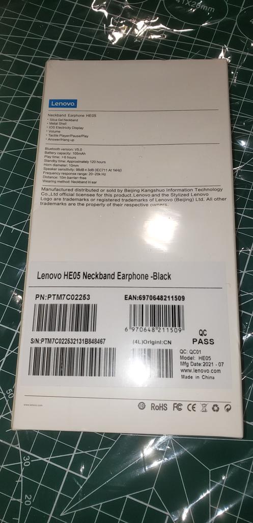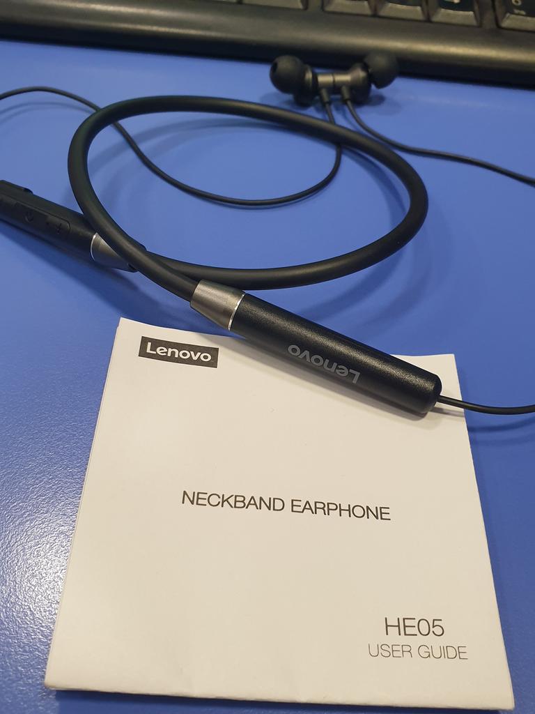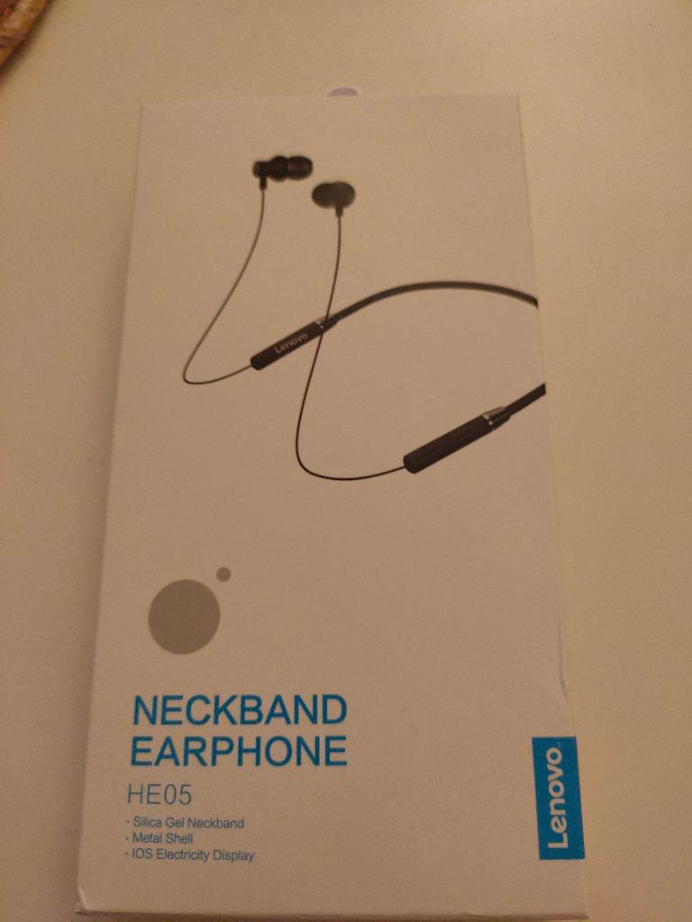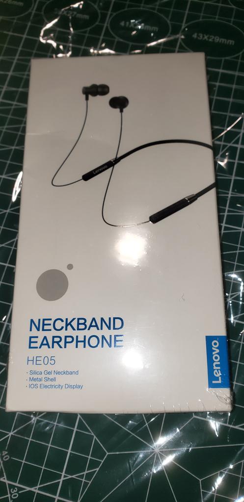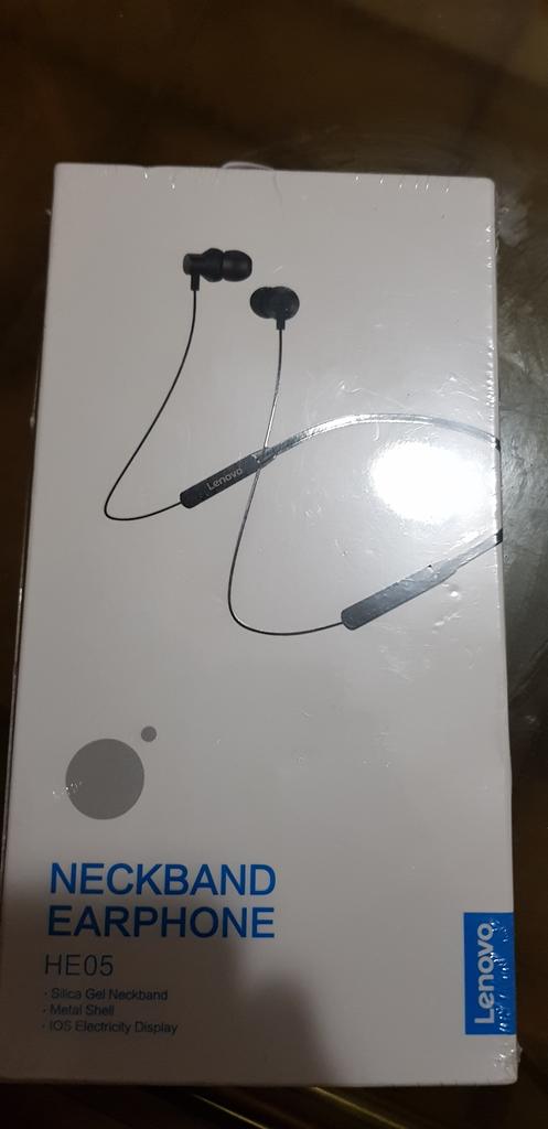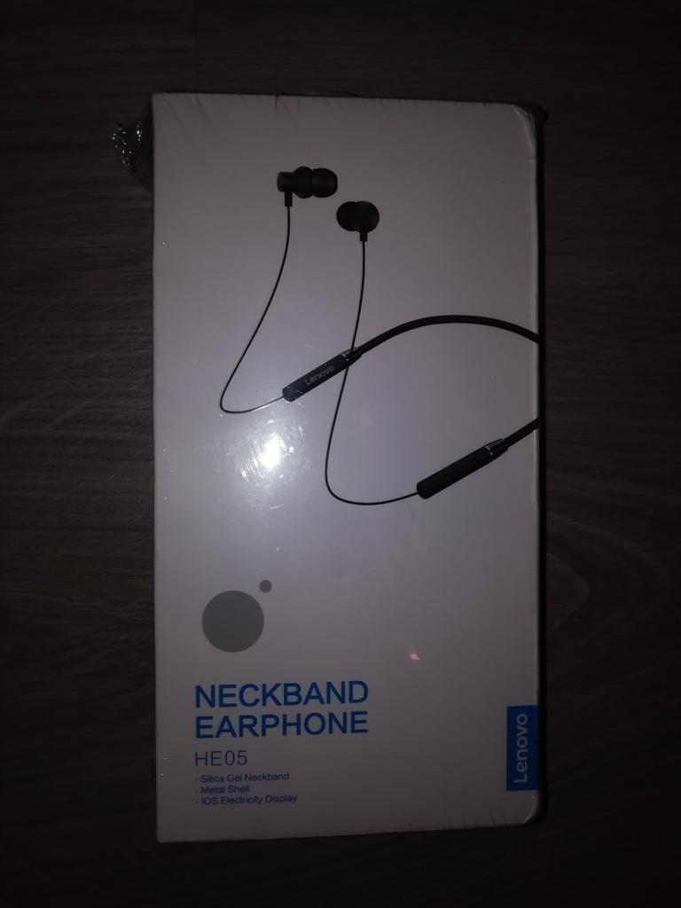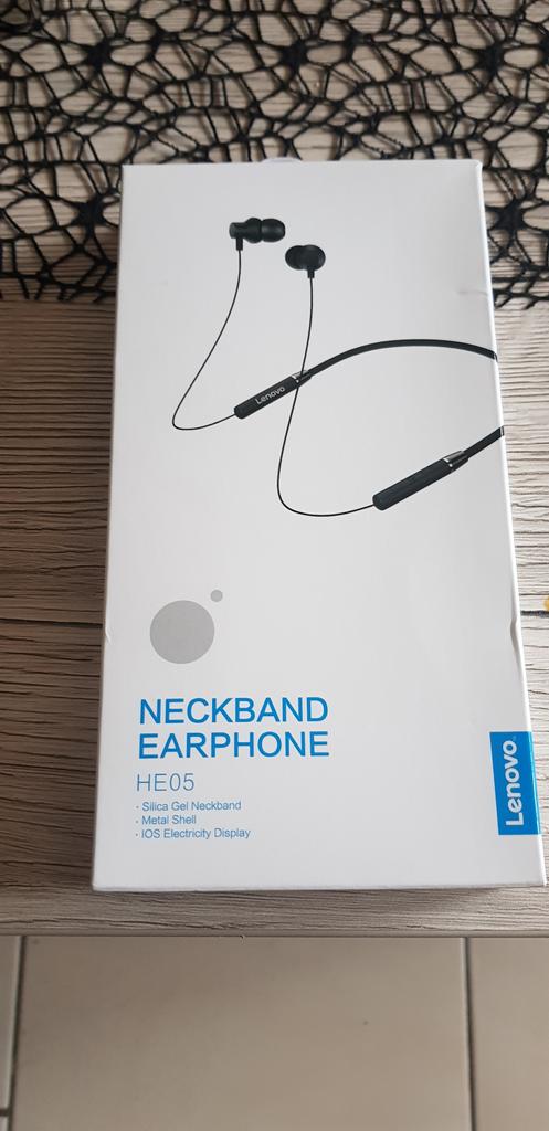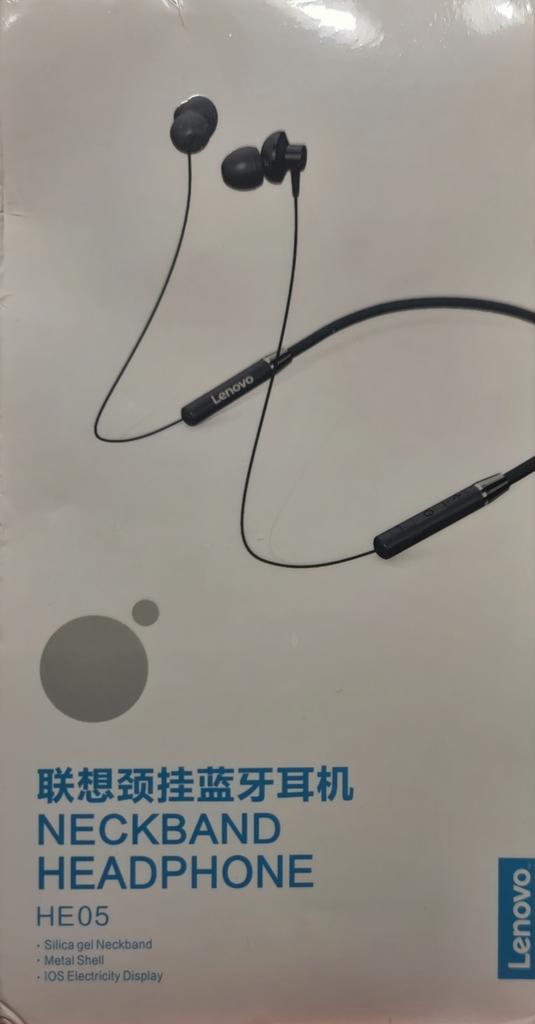 Lenovo Fone de ouvido intra-auricular HE05 com fita para o pescoço sem fio Bluetooth 5.0 e cancelamento de ruído de microfone