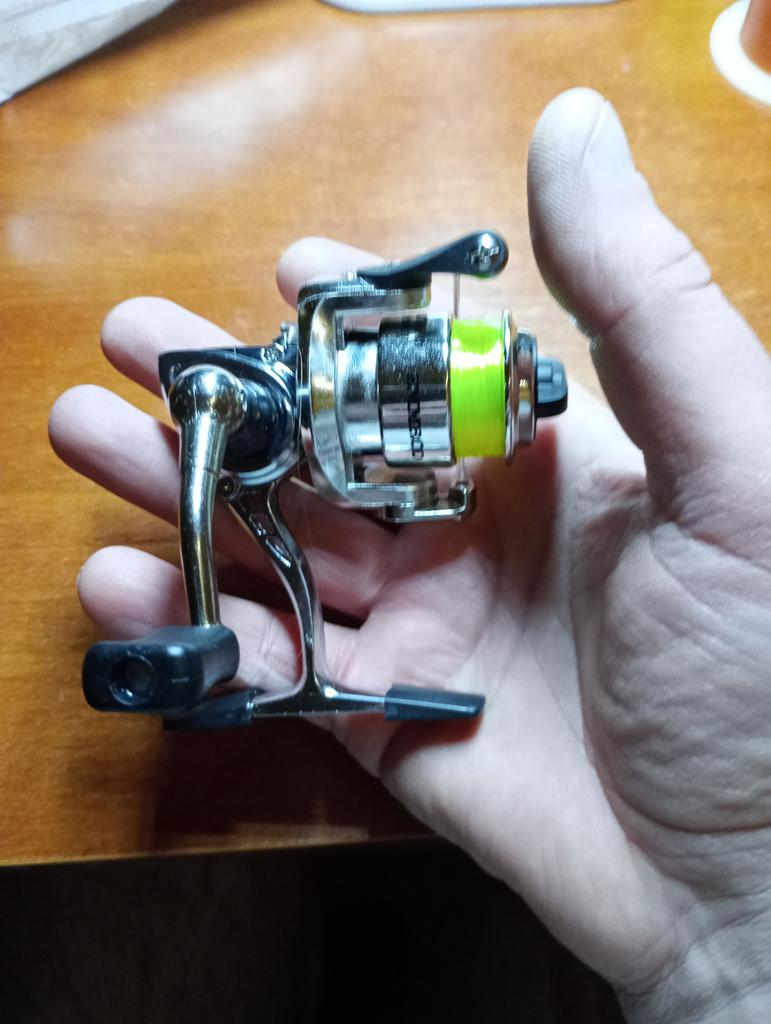Na verdade, um mini-bobina, um brinquedo simples. É uma pena que não indique quanta linha de pesca pode ser colocada nele.