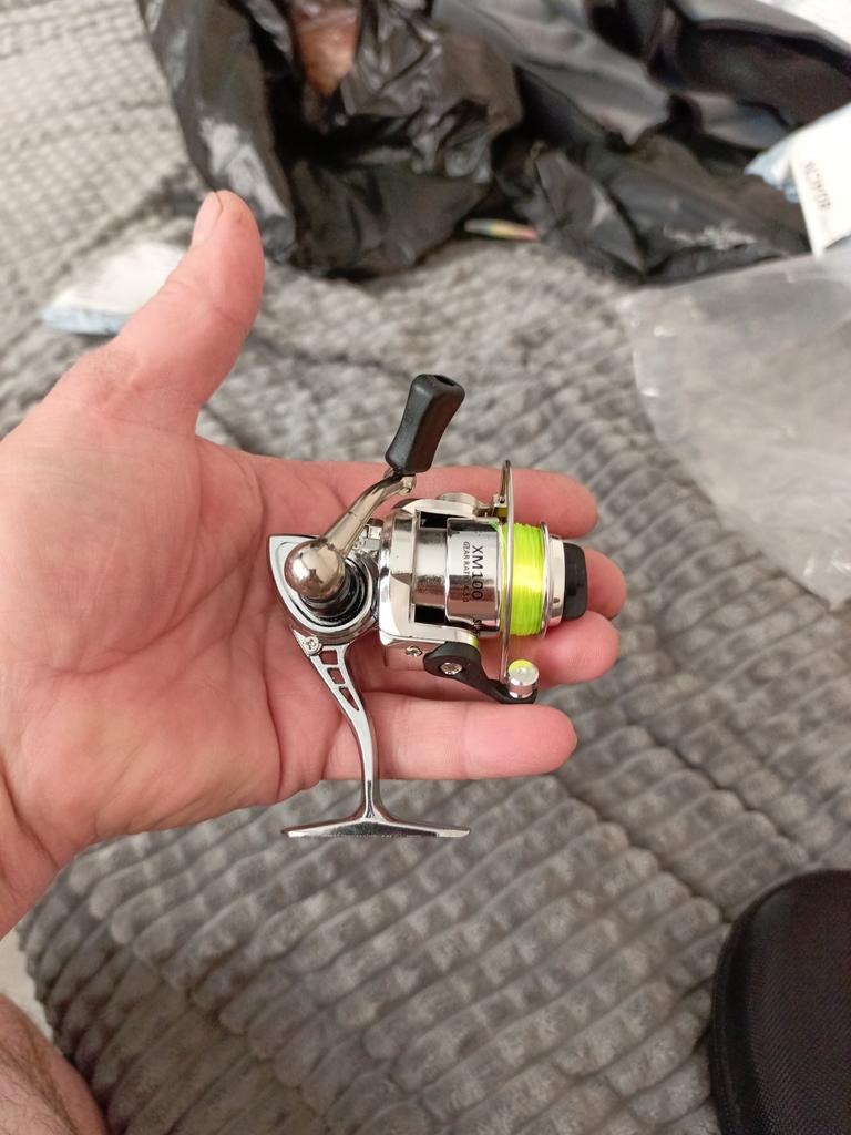 Compactado, leve, 15-20 metros de linha de pesca, base metálica. Entrega rápida. Obrigado.
