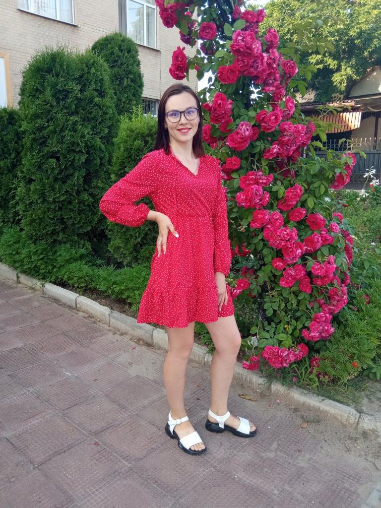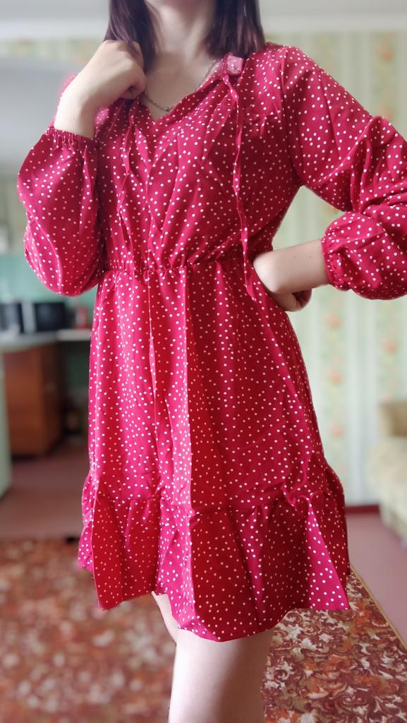 Um lindo vestido para a temporada primavera-verão ❤️ Na minha altura 1,68 sentava mais ou menos normal 😄 O vestido chegou como na foto, costuras Rivne, cuidado. O elástico no cinto não pressiona, mas segura bem! Eu pedi tamanho M. Peito 96cm Ombros 39 cm Cintura 68cm O comprimento do vestido é 87 cm A vendedora deu de presente uma faixa de cabelo ❤️ Tudo me convém, recomendo 👍