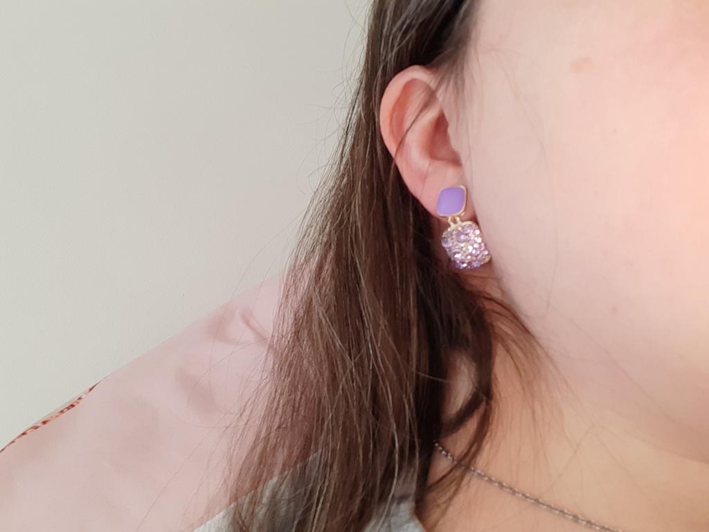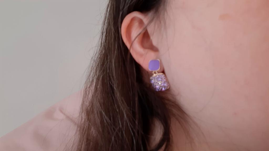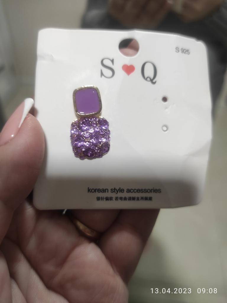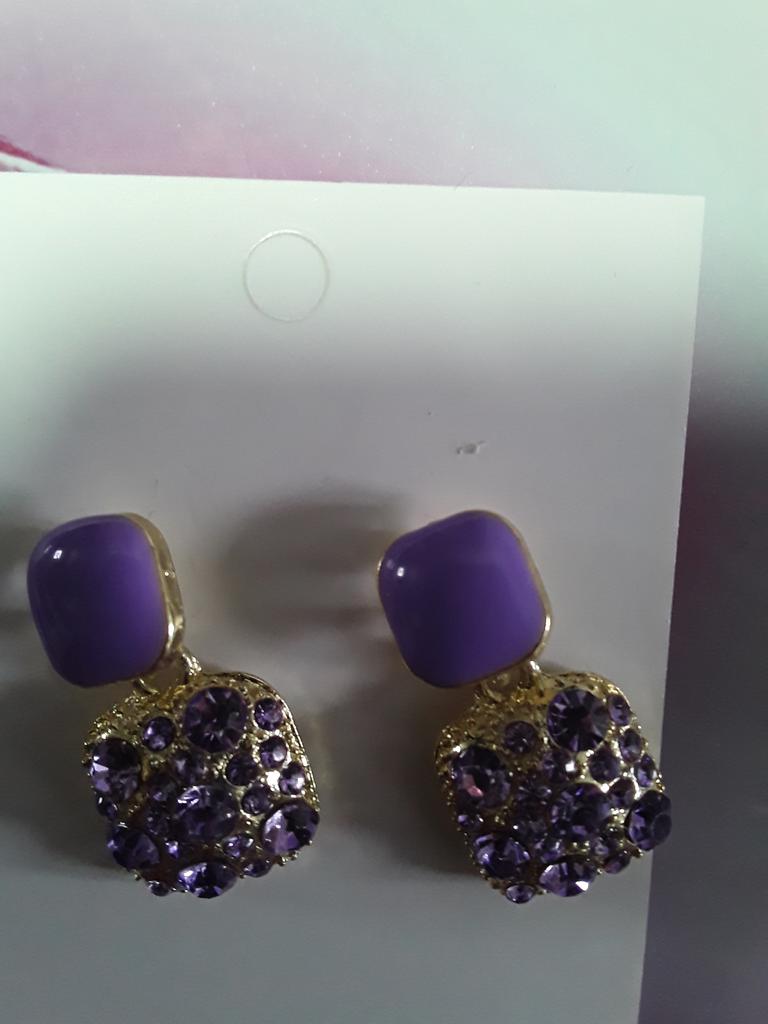 Encomendei os brincos em roxo. Eles são um pouco torcidos e pesados. A entrega foi lá dentro de duas semanas. Acho-os muito bonitos e combinam bem com a minha camisola roxa.