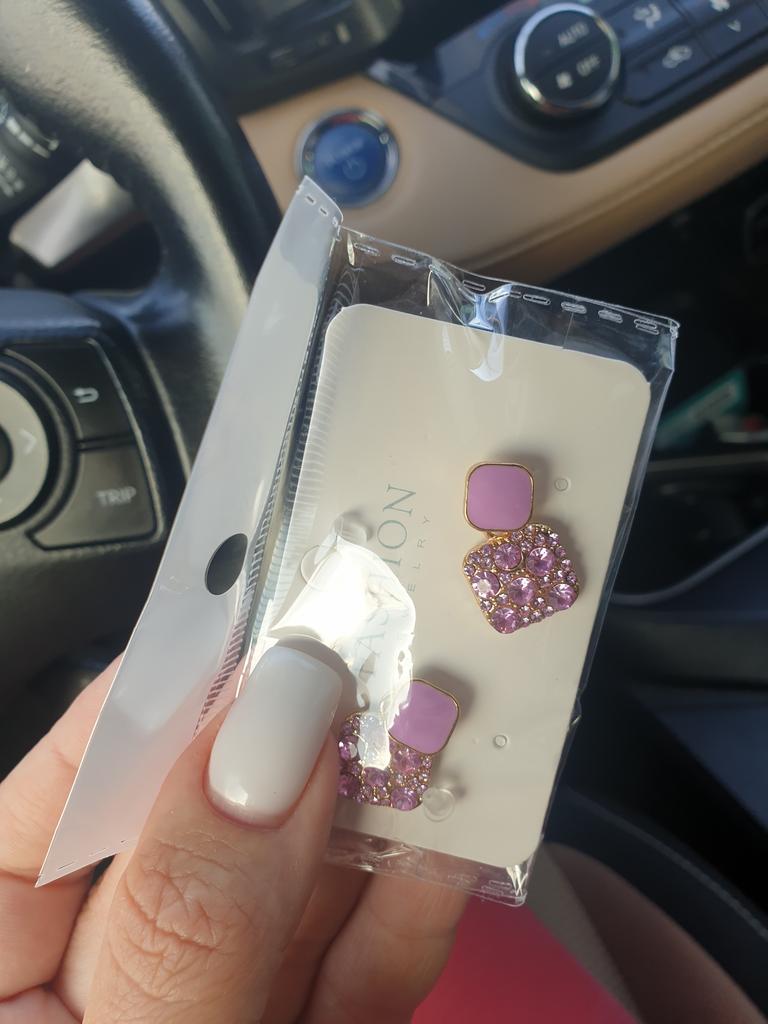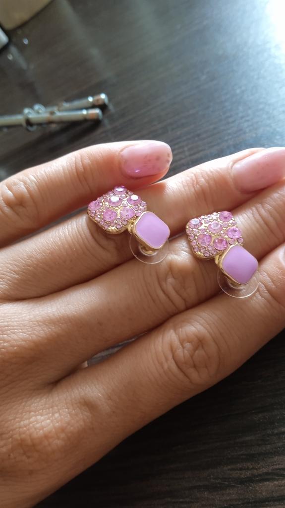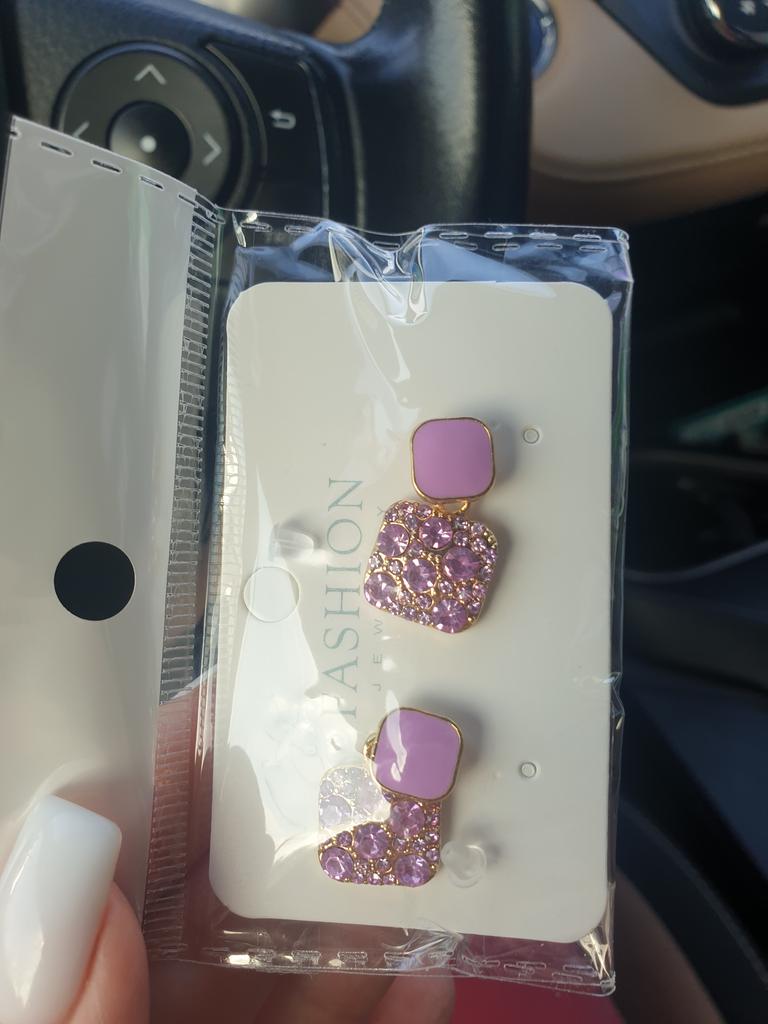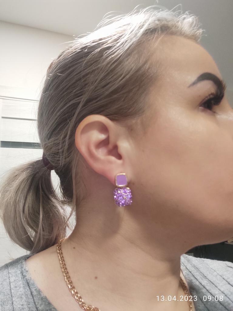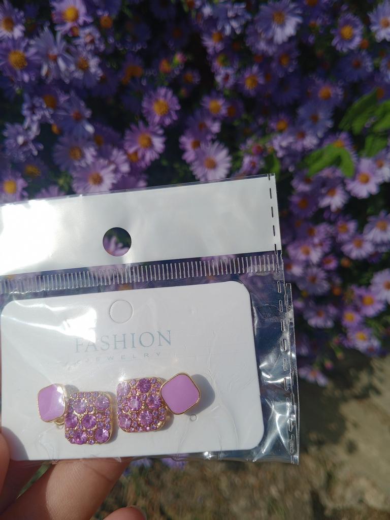 Encomendei os brincos em roxo. Eles são um pouco torcidos e pesados. A entrega foi lá dentro de duas semanas. Acho-os muito bonitos e combinam bem com a minha camisola roxa.