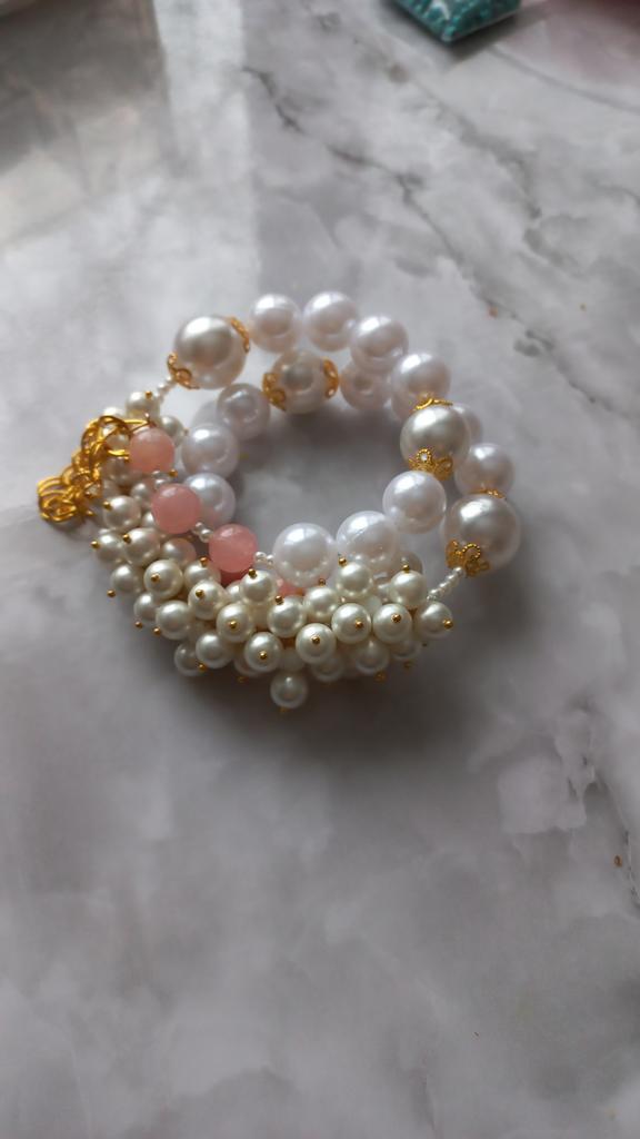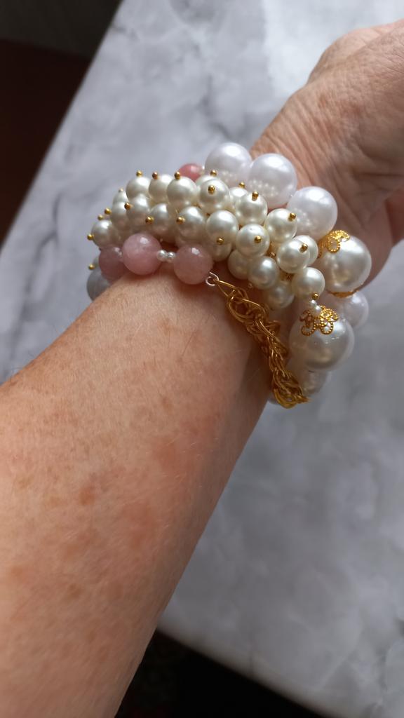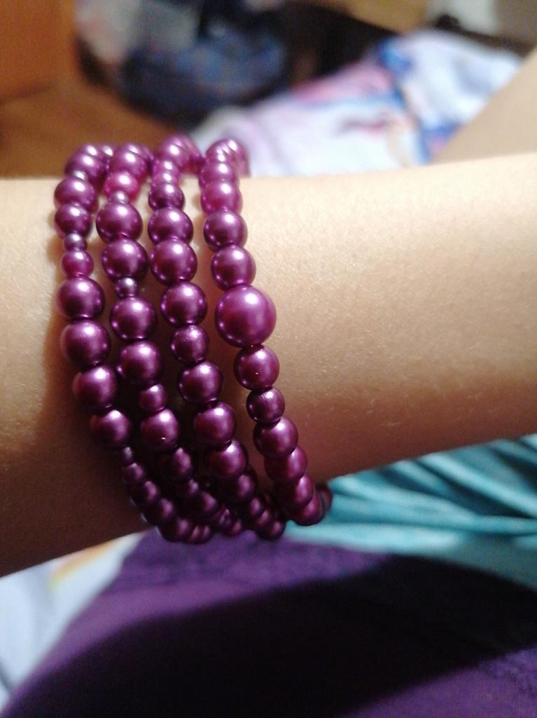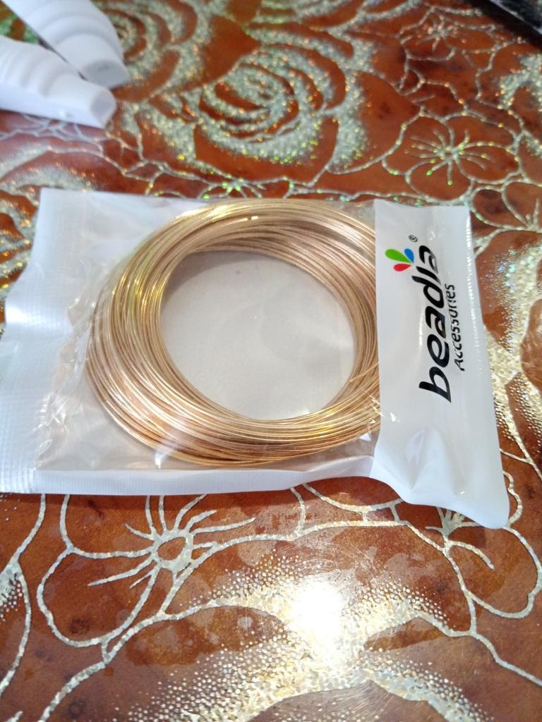 Enfiei as contas neste arame, cortei no comprimento necessário e resultou nesta pulseira.