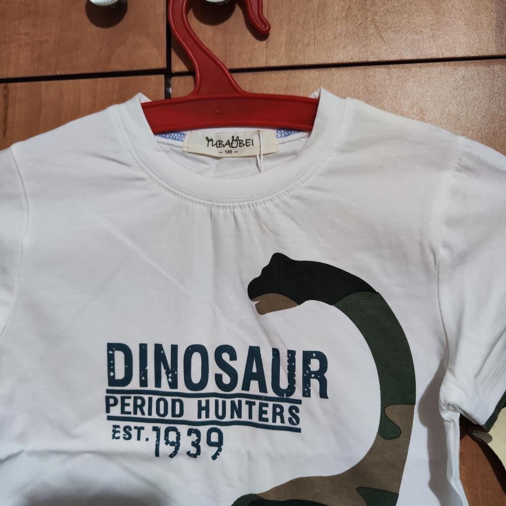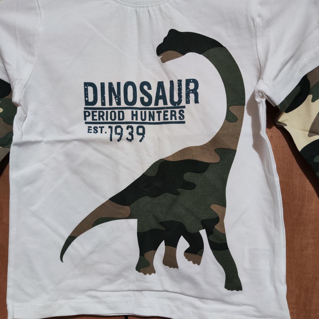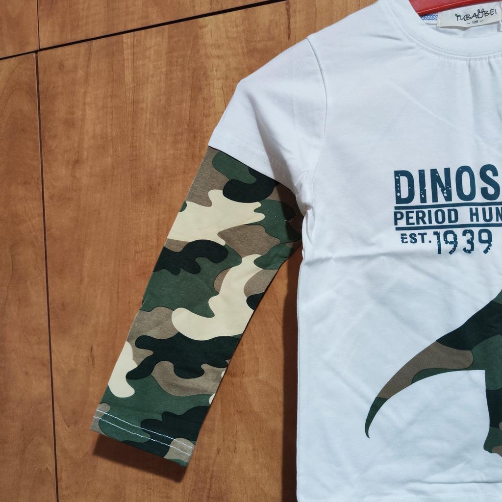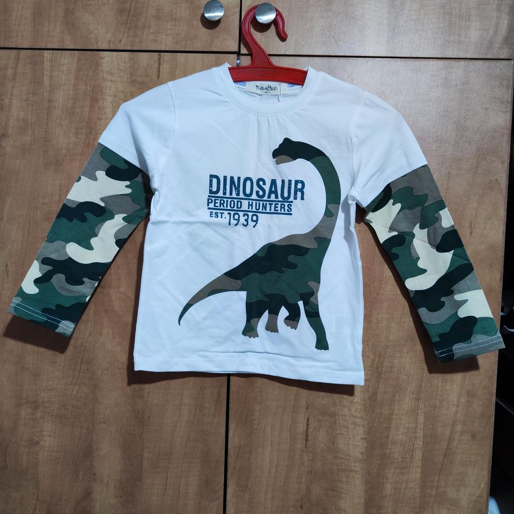 Camiseta de dinossauro para crianças A camiseta tem gola redonda e um dinossauro estampado. A camisa é feita de algodão com mangas compridas. Pode ser encomendado em vários tamanhos diferentes O produto chegou até mim com entrega rápida e segura 📦