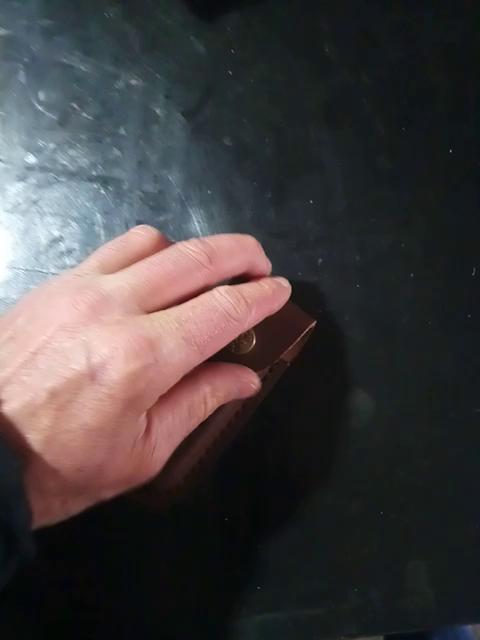 A qualidade é excelente, mas me enganei no tamanho, cabe no comprimento da dobra não mais que 12 cm. Couro bem costurado.