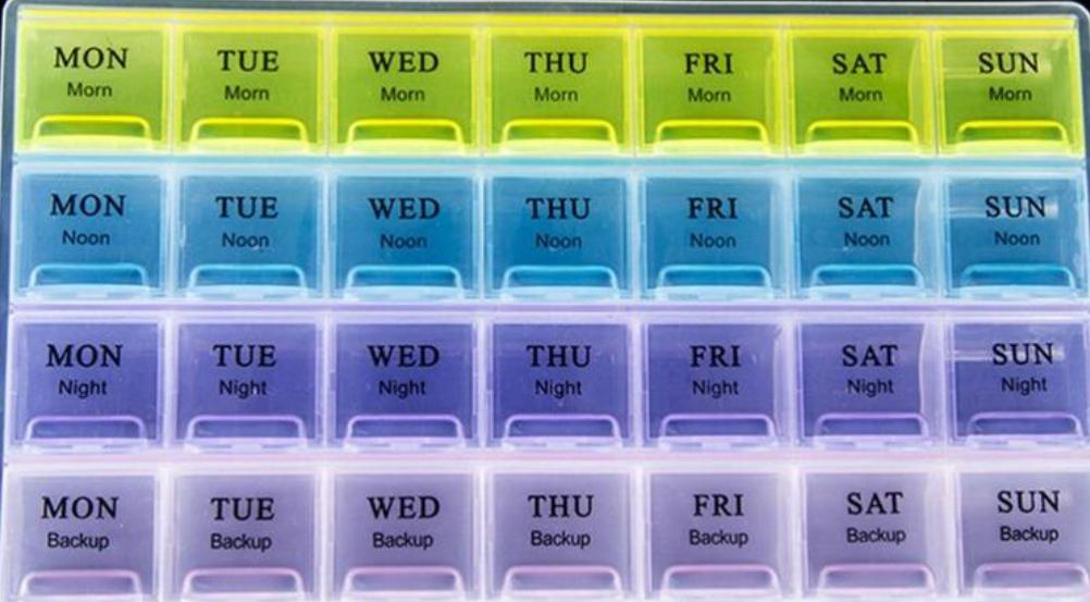 Útil para pílulas semanais.