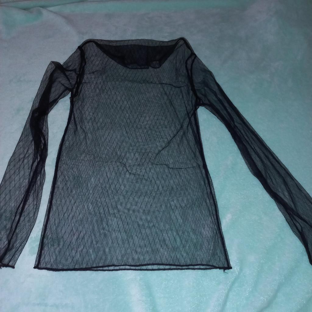 Malha muito, muito fina, quase sem peso. É costurado para que não haja diferença entre a frente e as costas, por isso se contorce perto do pescoço.