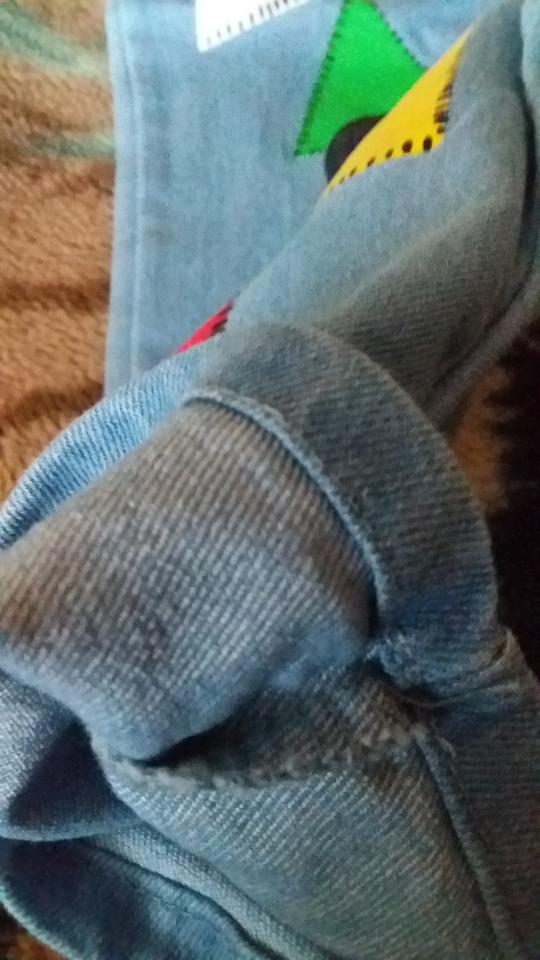 Parece fofo, a impressão certamente desaparecerá logo após várias lavagens, que pena, pensei que os remendos foram costurados, infelizmente a foto é enganosa.