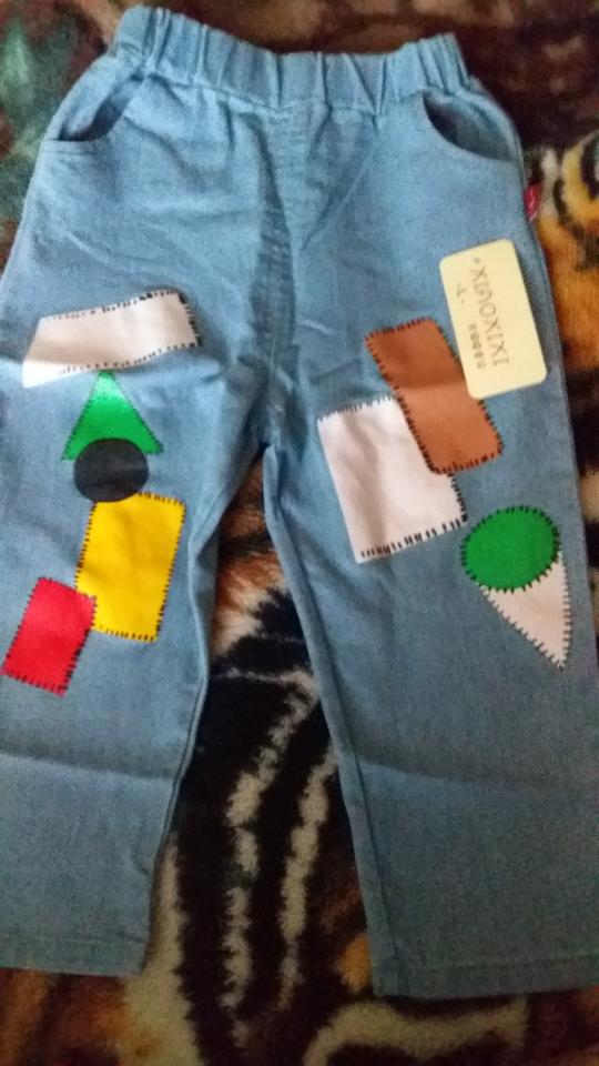 Jeans bem largos, como calças harém. Para uma criança densa. A foto mostra que eles são largos. Este é o tamanho 90