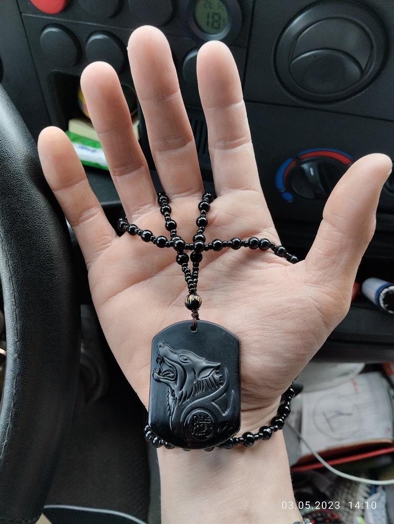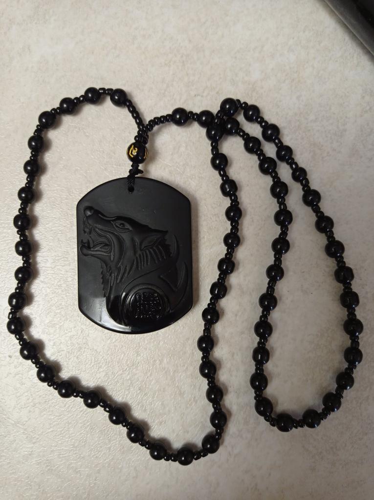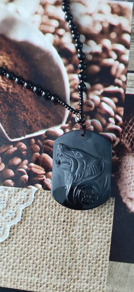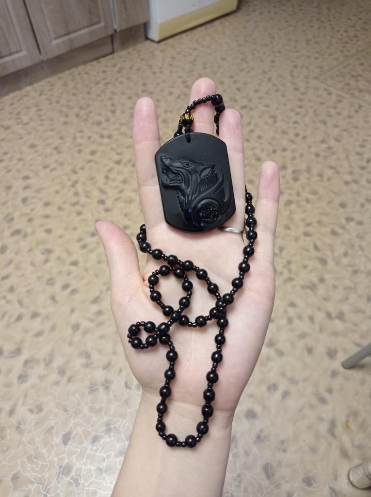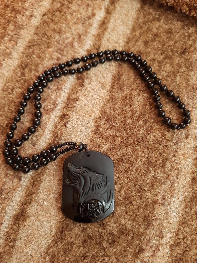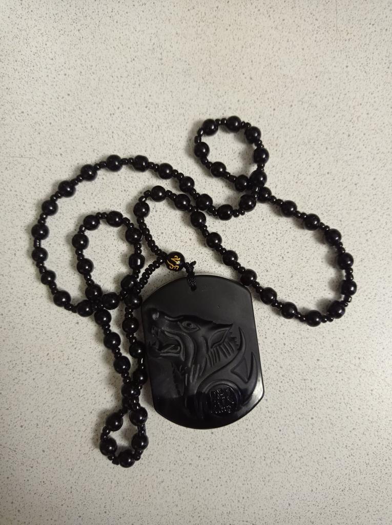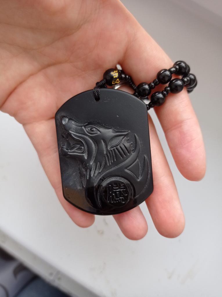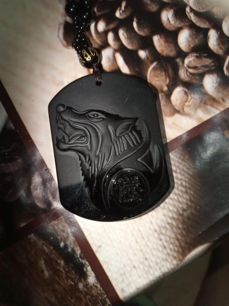 Natural preto obsidiana escultura lobo cabeça amuleto pingente obsidiana bênção sorte pingente