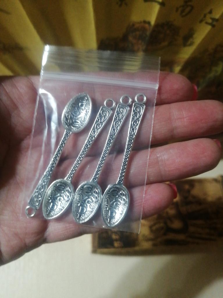 4 pçs/lote jóias fazendo diy artesanato encantos antigo prata cor 12x57mm rico colher pingente