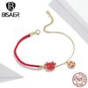 Bisaer Pulseira de bezerro da sorte 925 prata esterlina corda vermelha e corrente de cor dourada pulseiras de moda feminina joias presente