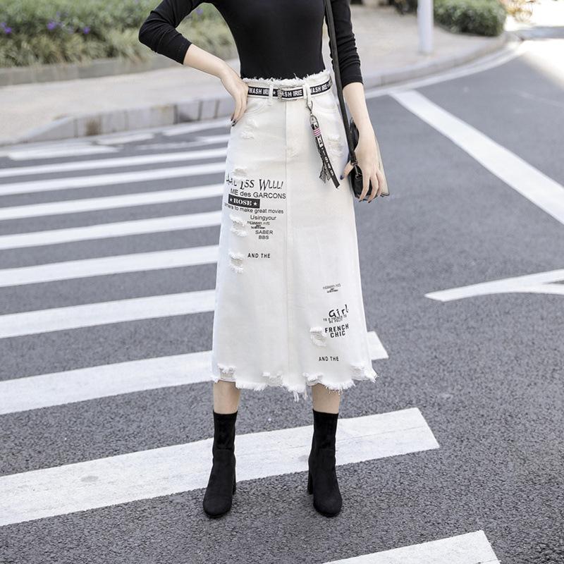 Mulheres saia buraco denim saia verão longas saias jeans de cintura alta saia plus size