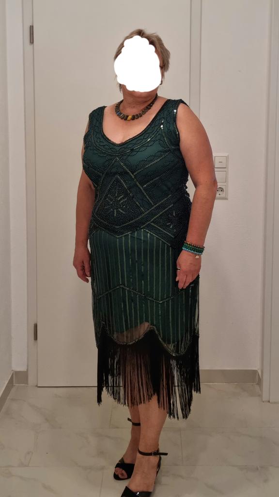 Este vestido é tão lindo e bem feito que é o segundo que encomendo. Tenho em verde e bege, tamanho alemão 46, aqui 4xl. 3xl também caberia.