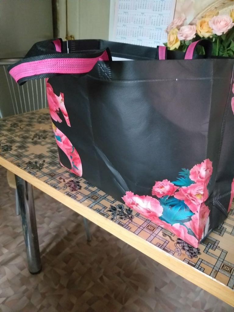 Uma sacola de compras é um excelente substituto para sacolas plásticas. Com sua ajuda, você economiza ao não comprar mais uma sacola na loja, além de ajudar no combate à poluição ambiental. Feito de spunbond na cor preta. A qualidade é boa, não há odores estranhos.