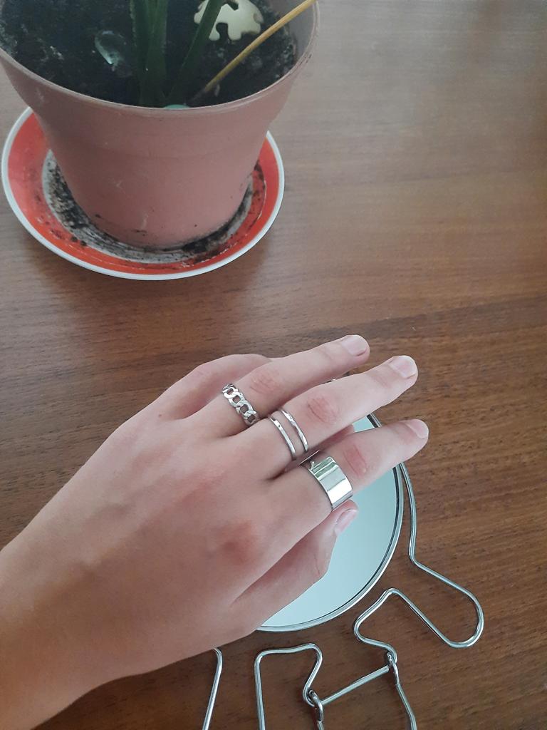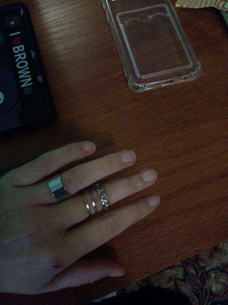 😍😍😍 Os anéis são muito legais Por esse dinheiro, eles geralmente são chiques Já tive tempo de usá-los (3 vezes tão molhados) e para ser honesto, as manchas pretas depois de lavar as mãos ainda estavam lá, então acho que vão ficar em boas condições por muito tempo Os anéis são bastante leves e bem feitos Estou satisfeito com a compra 😸 obrigado vendedor