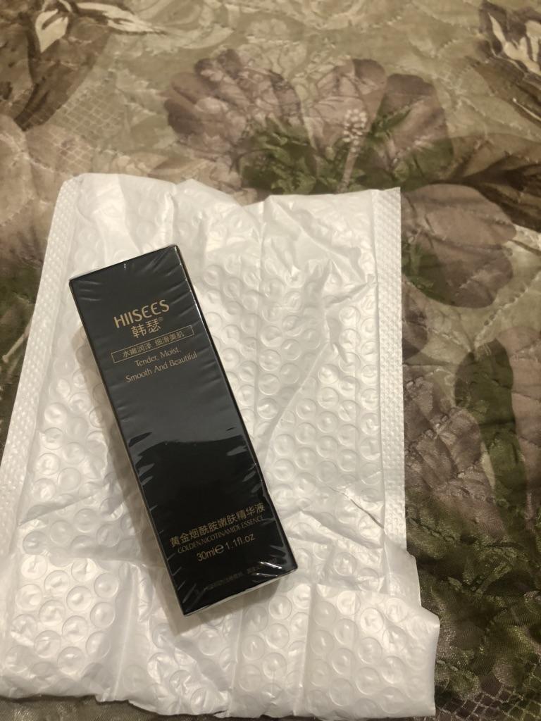Entregue em uma caixa bonita e nem um pouco amassada. Para facilitar a dosagem, existe uma pipeta na tampa. Não posso falar do resultado, só apliquei duas vezes. Permanece pegajoso na pele, provavelmente para melhor adesão ao creme ou pó motivador.