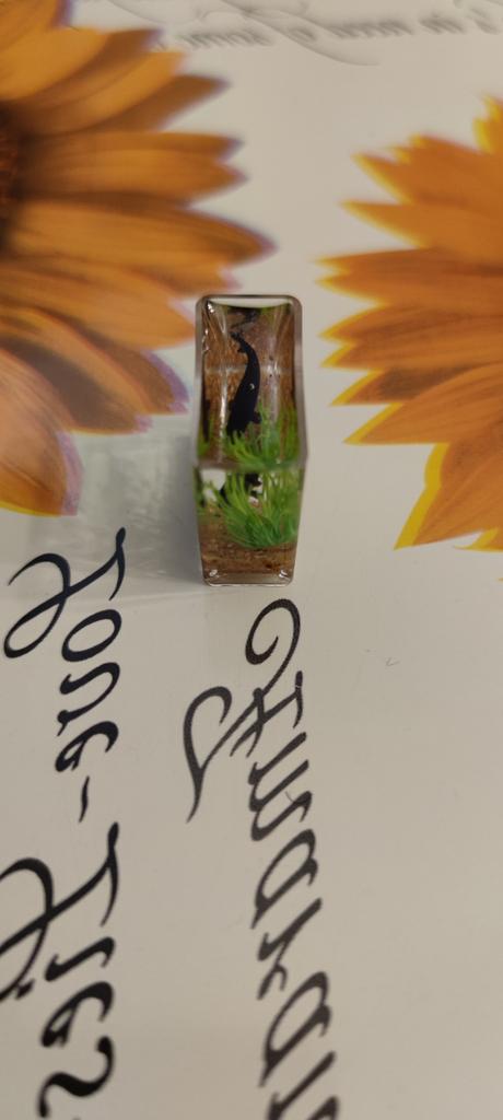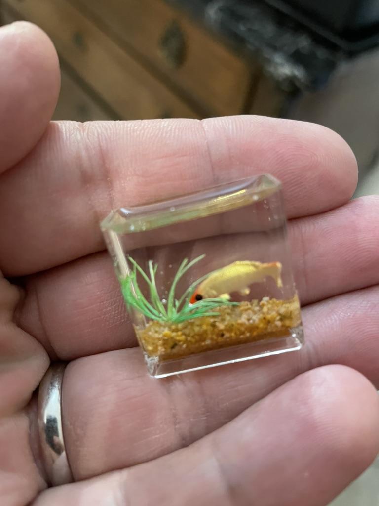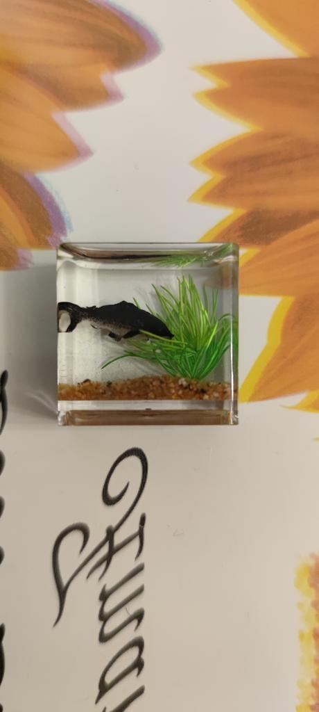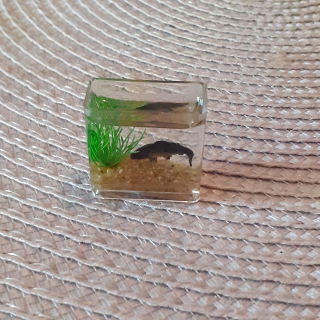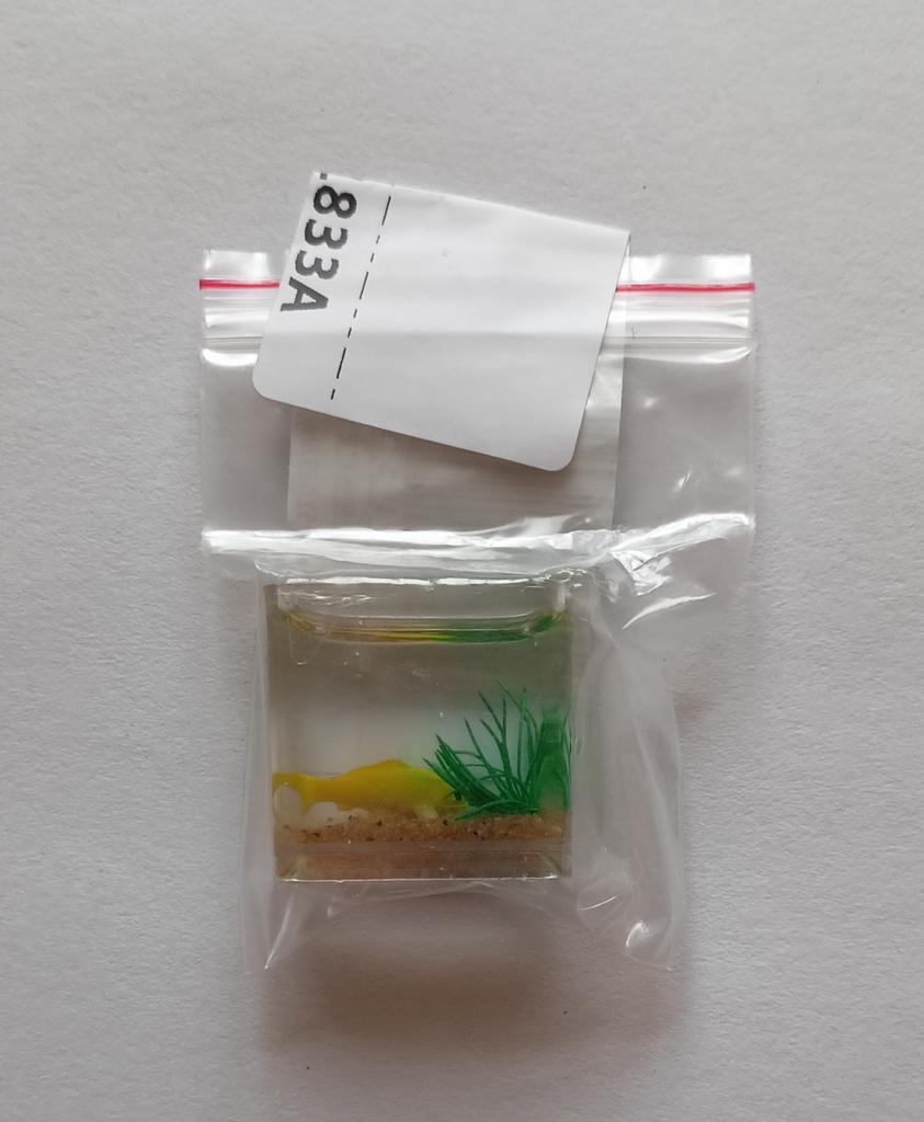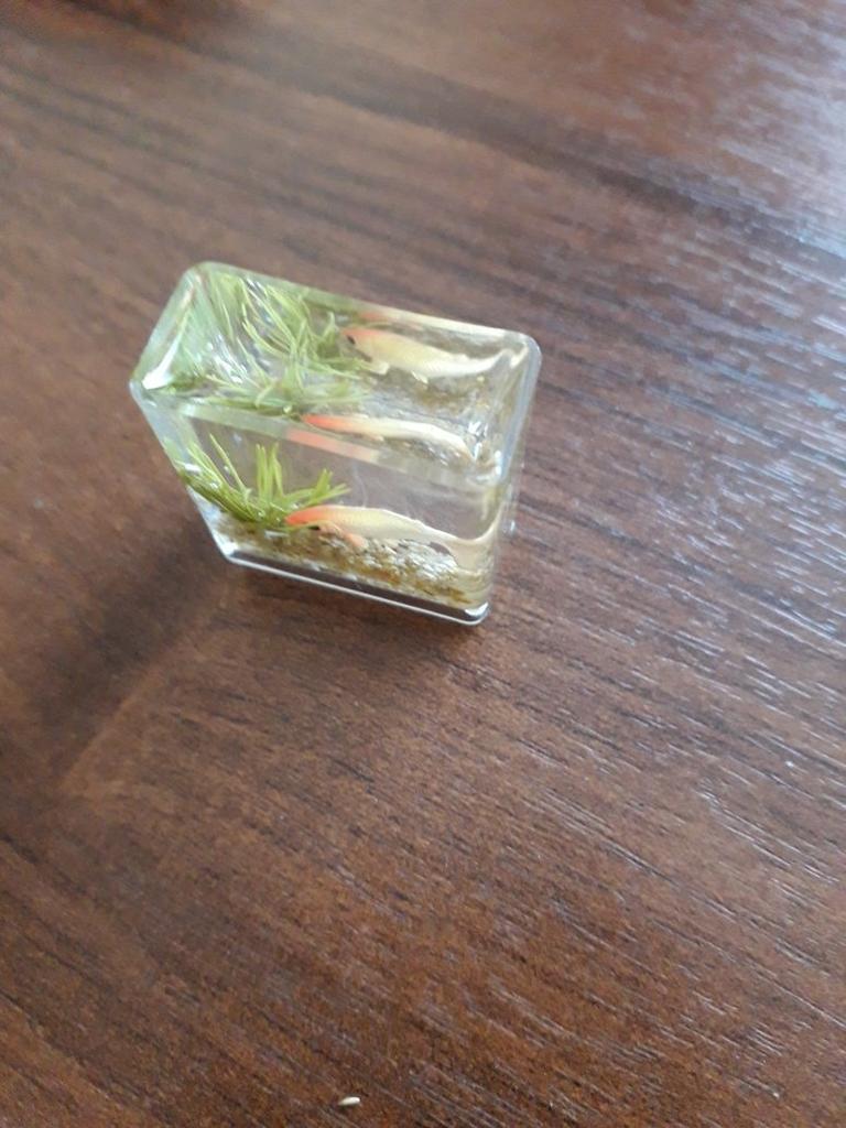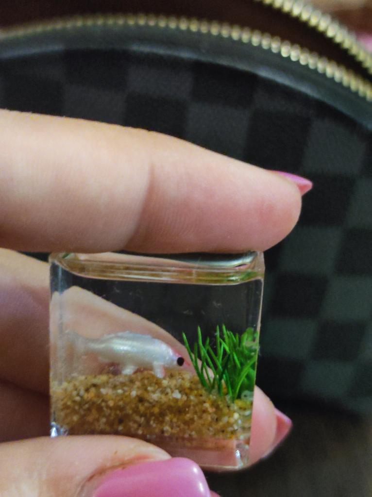 Li que o aquário é pequeno, mas é só uma miniatura (2 cm), só dá para ver no microscópio. A minicópia do aquário parece bem feita, os peixes estão bem visíveis, mas........ No futuro, você precisará ler a descrição do produto com mais atenção.