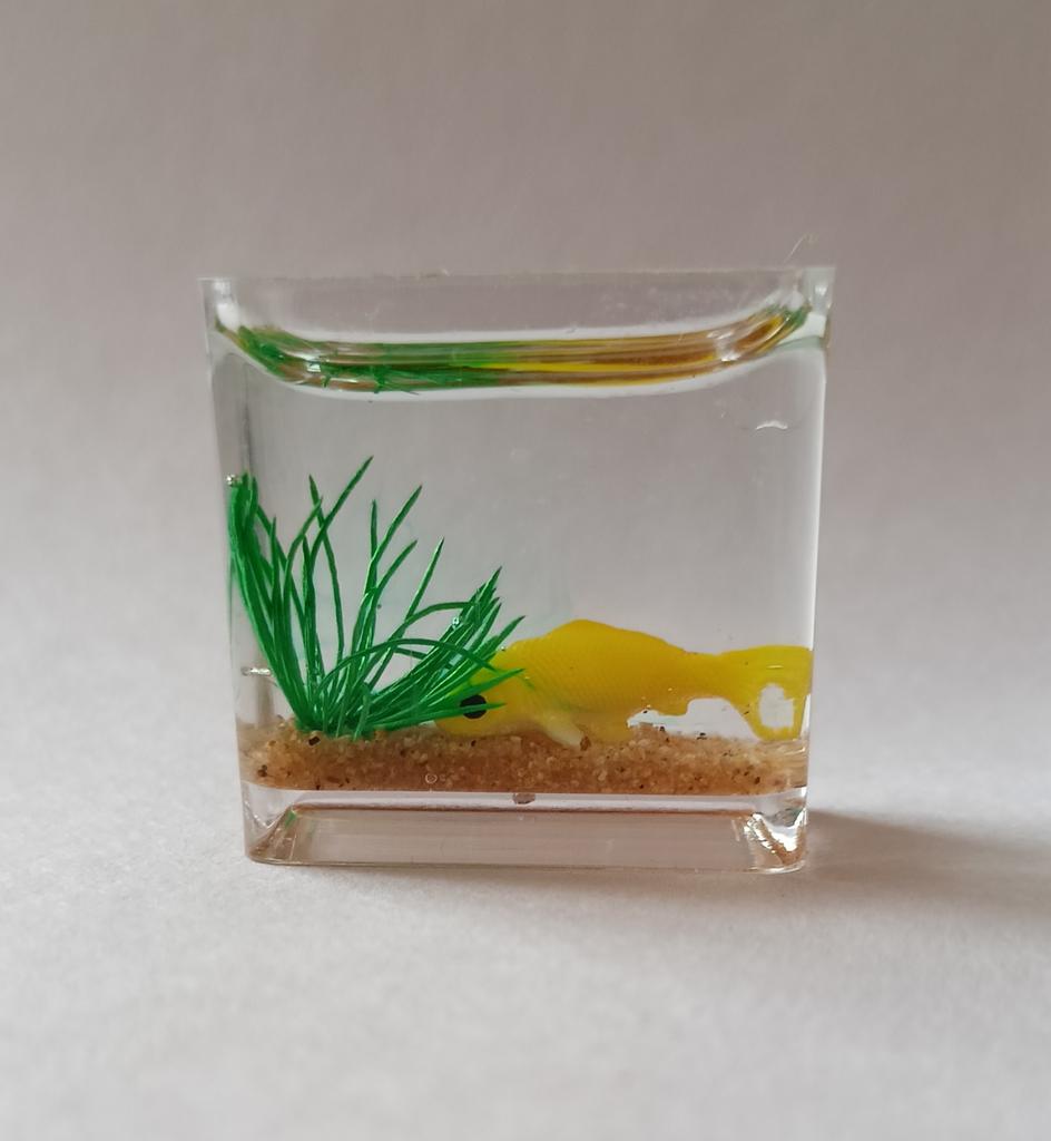 Belo aquário. Em miniatura, mas com bons detalhes, os peixes e a planta parecem reais. Lindo. Eu recomendo.