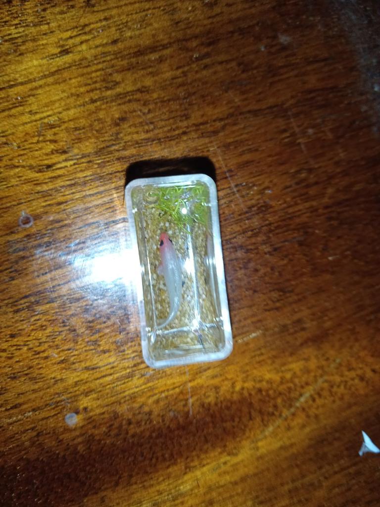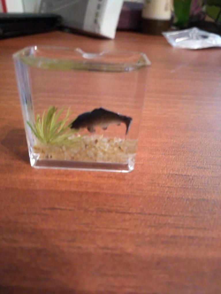É tão pequenininho e é uma pena que o peixe esteja imobilizado((