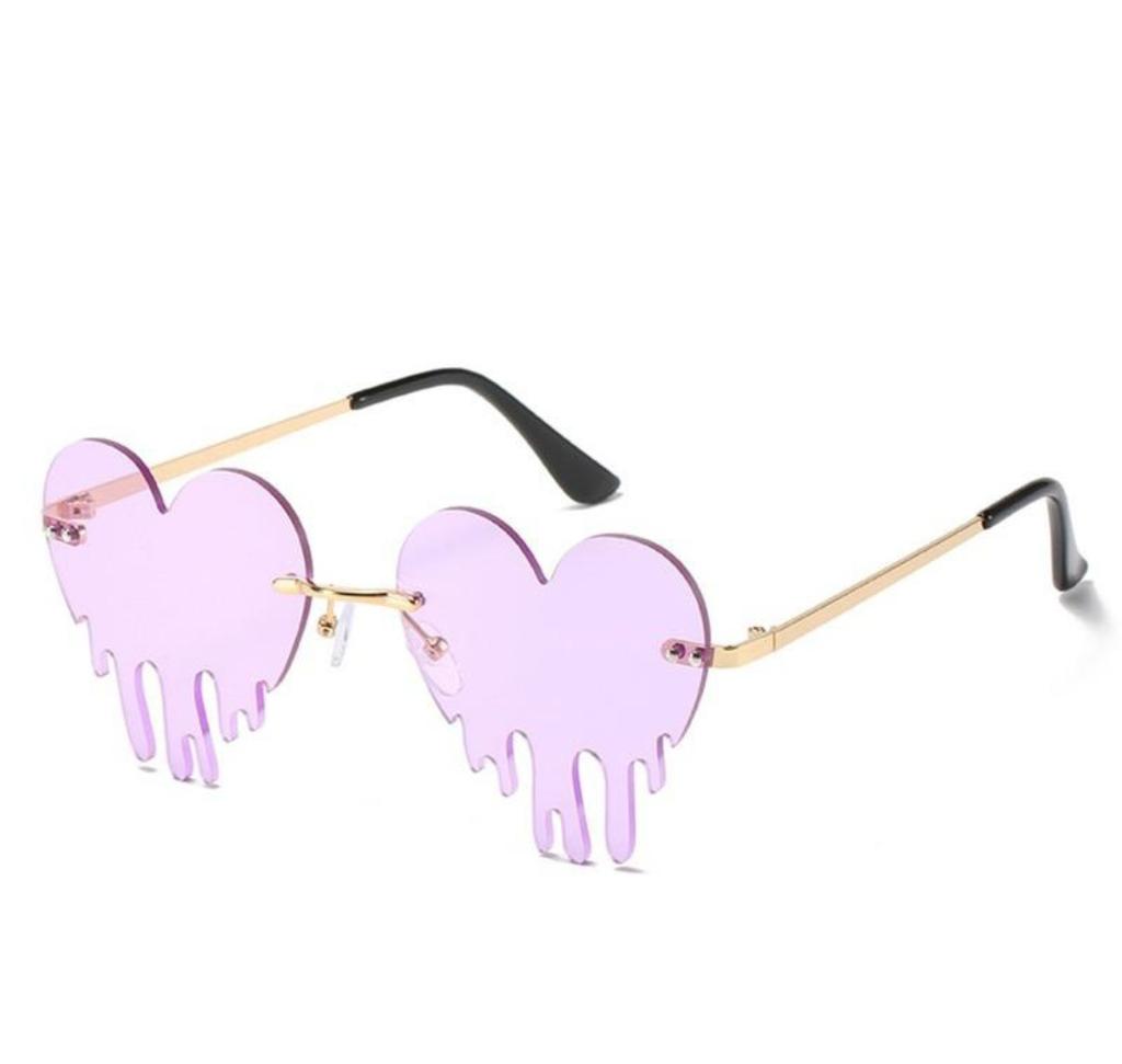 Moda colorido coração óculos de sol feminino masculino engraçado festa óculos de sol feminino grande metal sem aro óculos motorista