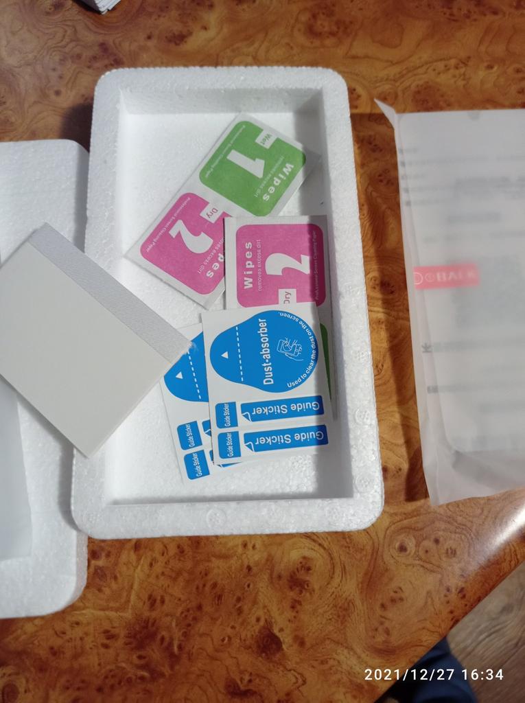 Encomendado em 25/11/21. Recebido em 17.01.22. Ucrânia. região de Kyiv. A avaliação foi feita por uma pessoa externa - o filme de hidrogel não parece ruim, uma espátula e adesivos estão incluídos para remover o ptlu. EU recomendo o vendedor.