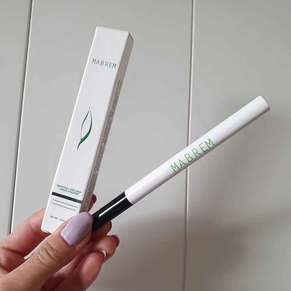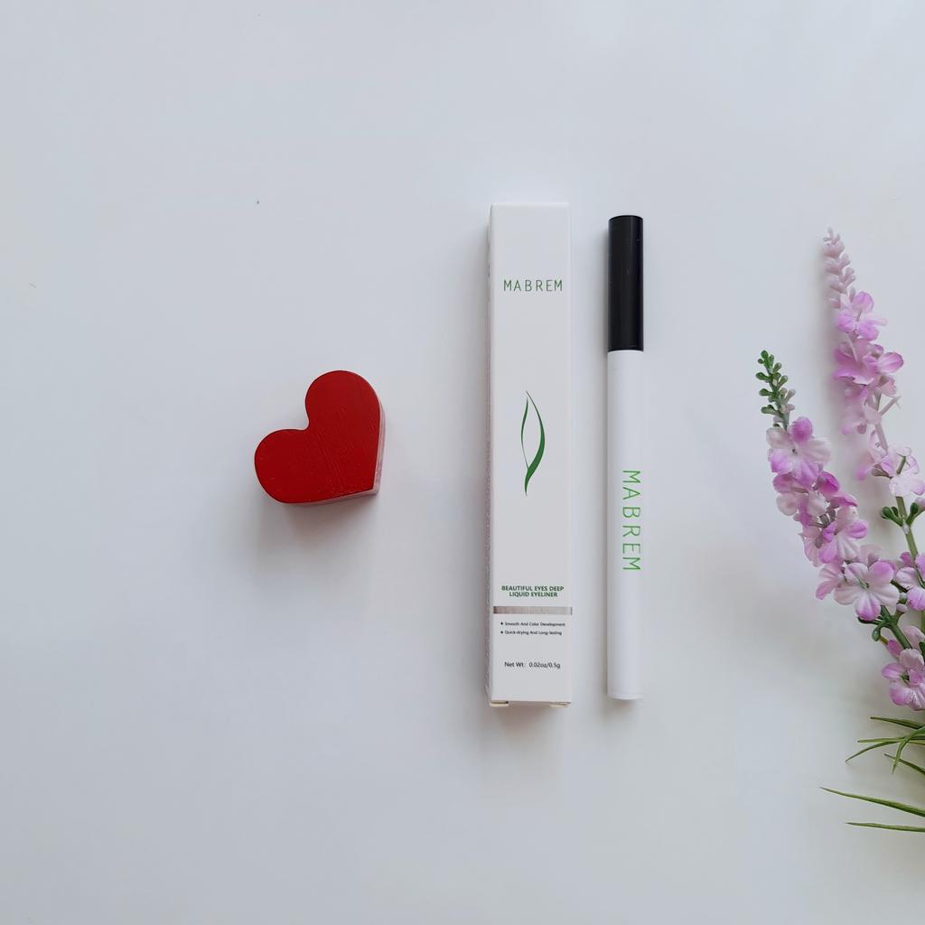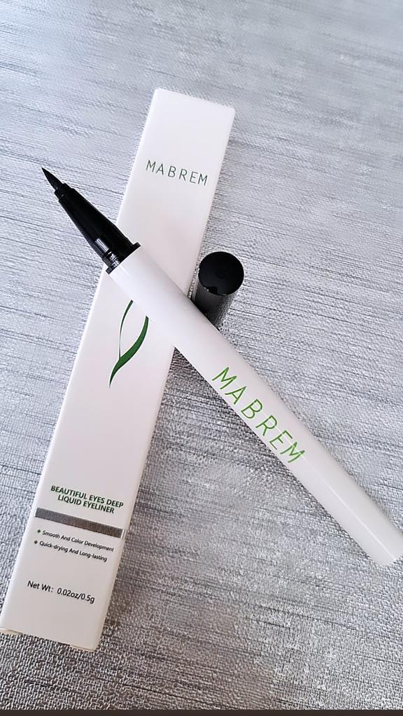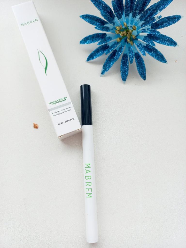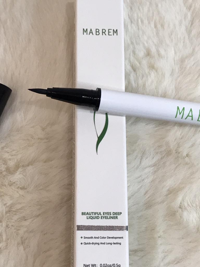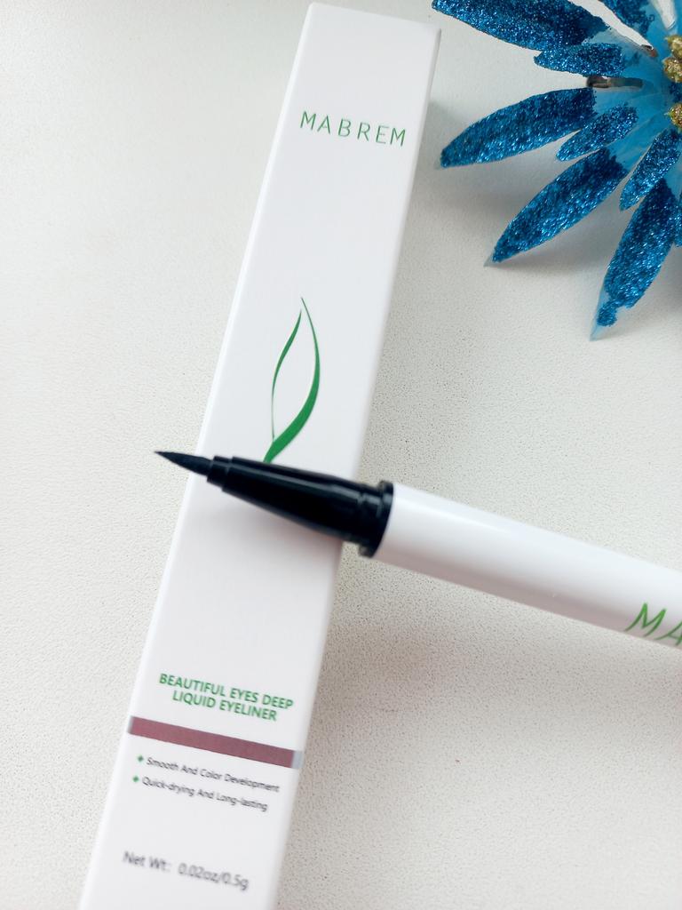 Beautiful Eyes Deep Liquid Eyeliner da Mabrem Delineador super bonito e acima de tudo de filigrana, preto bonito e profundo, ótima ponta que não é muito grossa nem muito fina. O delineador é fácil de aplicar, não arde e não borra. É levemente cintilante. Mas não incomoda. Se você está procurando por um bom delineador a um preço baixo, Mabrem é o lugar para você.