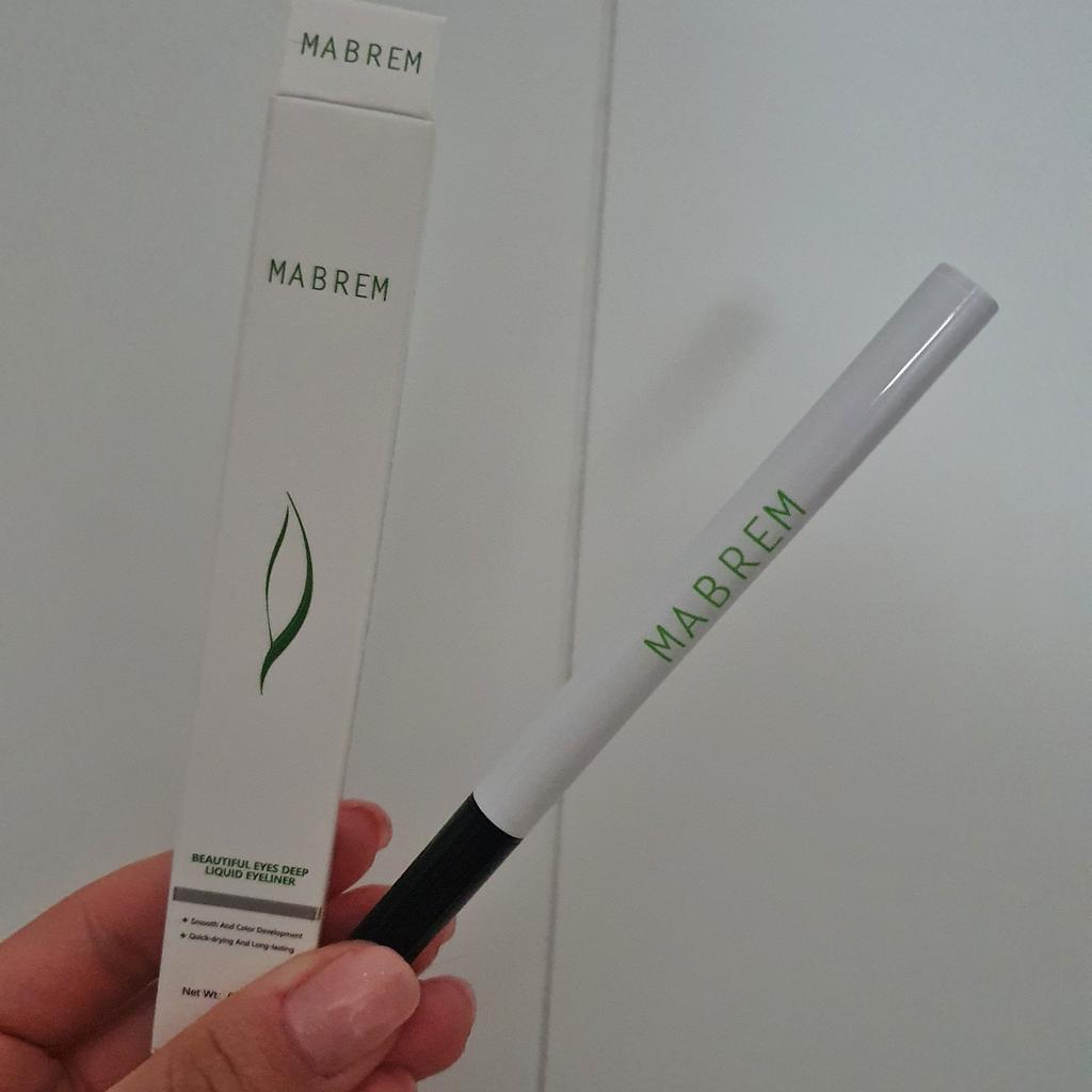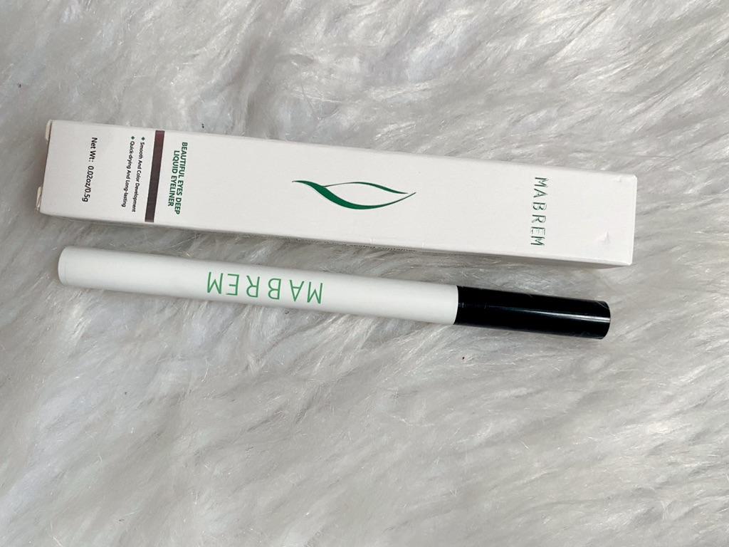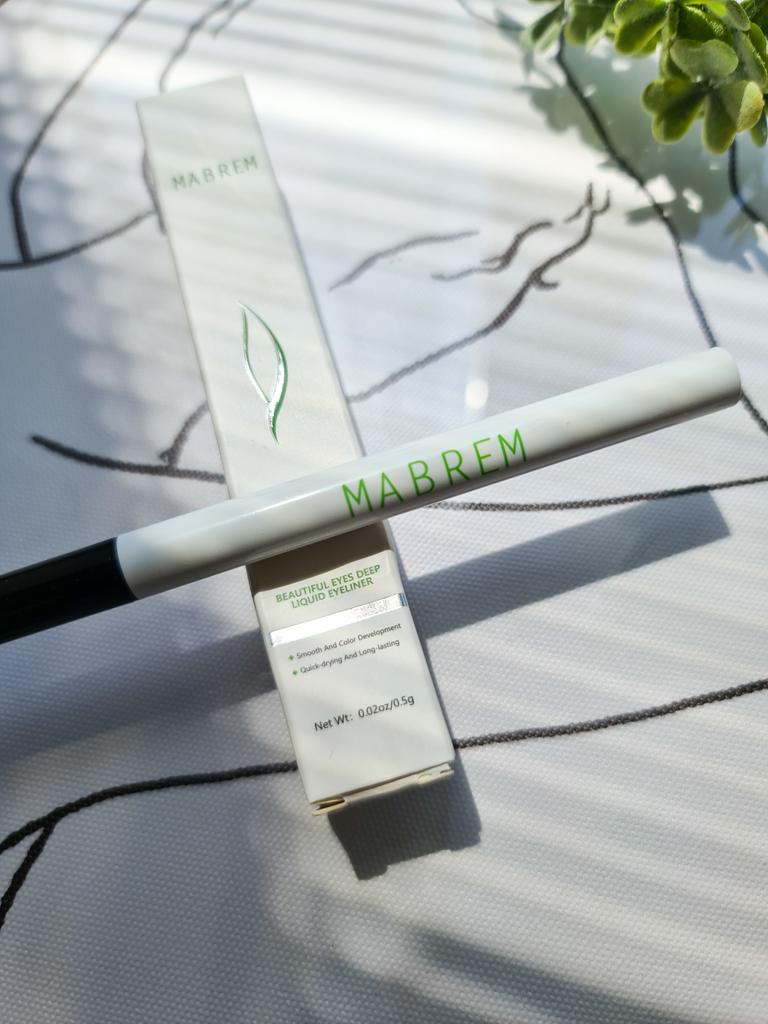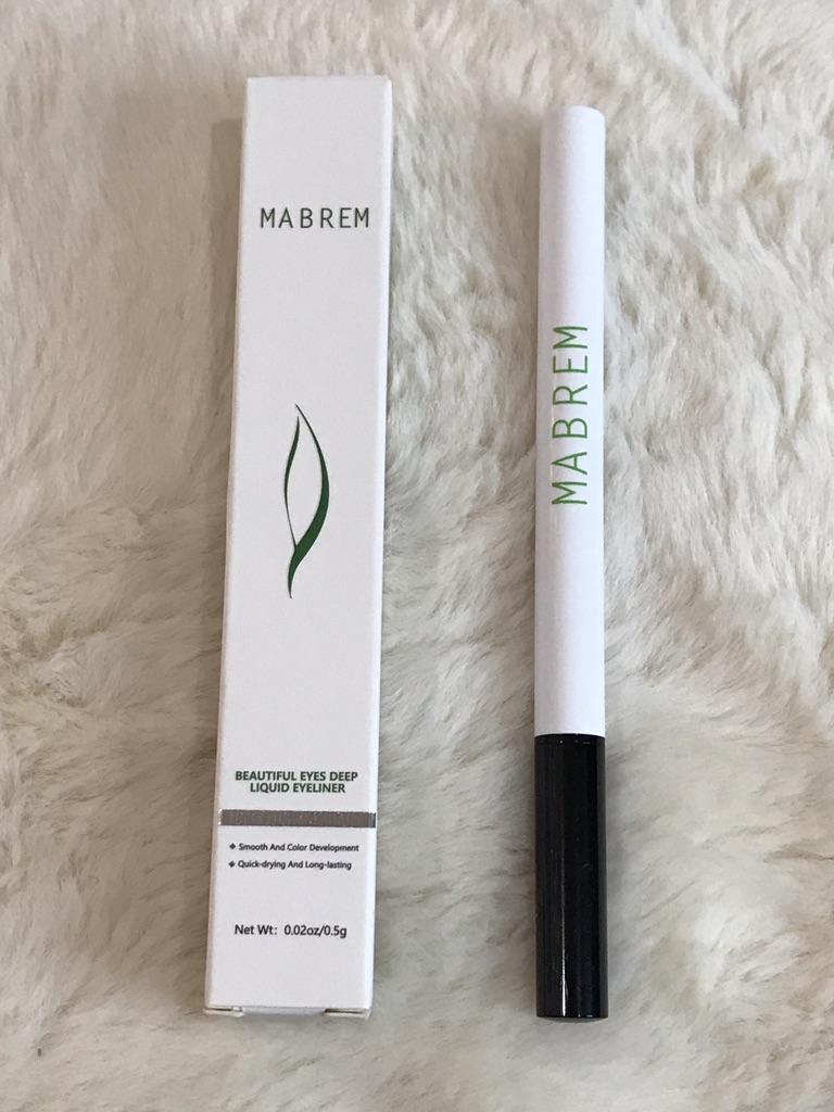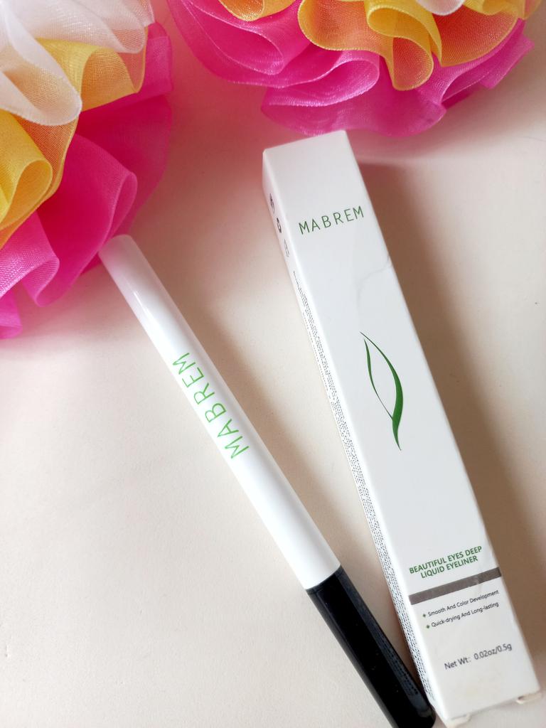 Beautiful Eyes Deep Liquid Eyeliner da Mabrem Delineador super bonito e acima de tudo de filigrana, preto bonito e profundo, ótima ponta que não é muito grossa nem muito fina. O delineador é fácil de aplicar, não arde e não borra. É levemente cintilante. Mas não incomoda. Se você está procurando por um bom delineador a um preço baixo, Mabrem é o lugar para você.