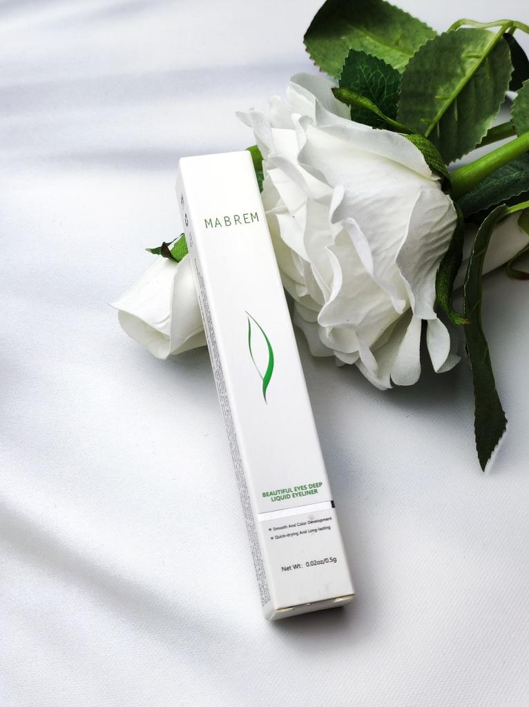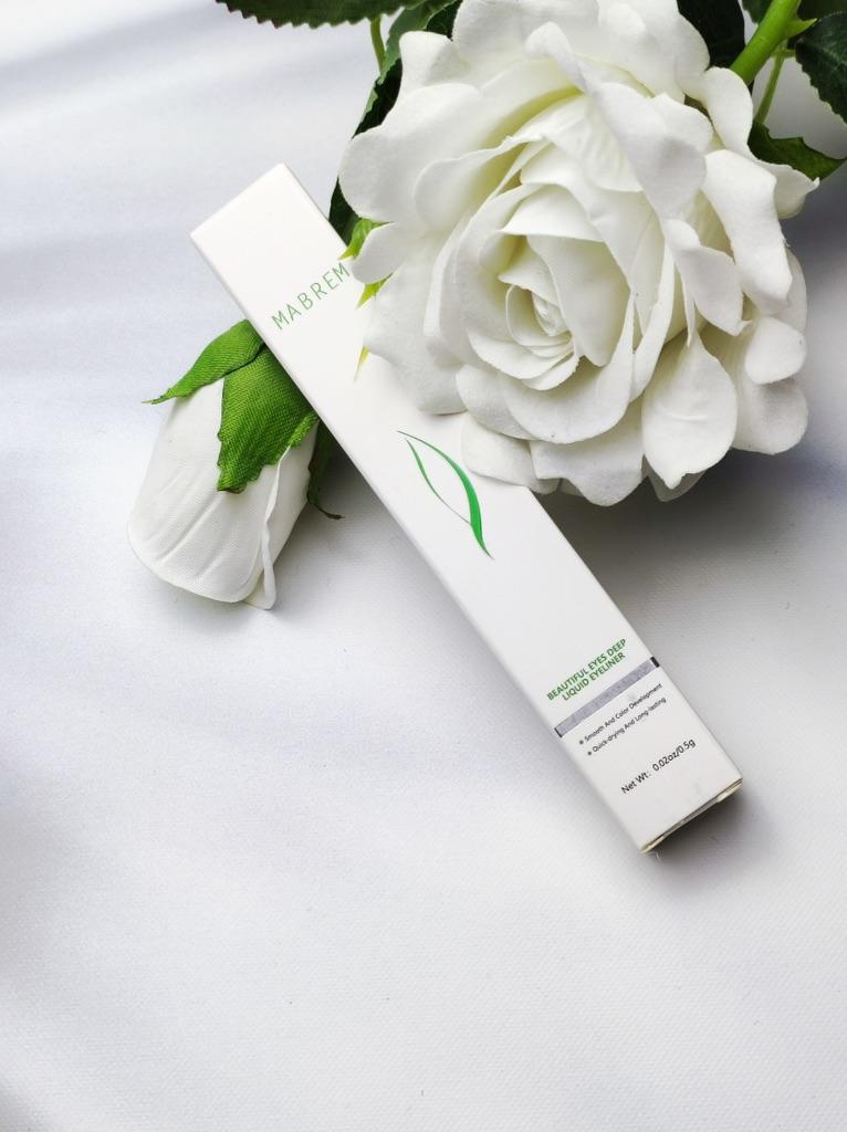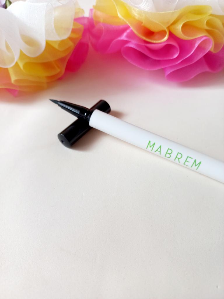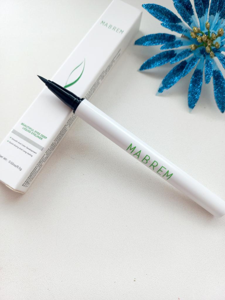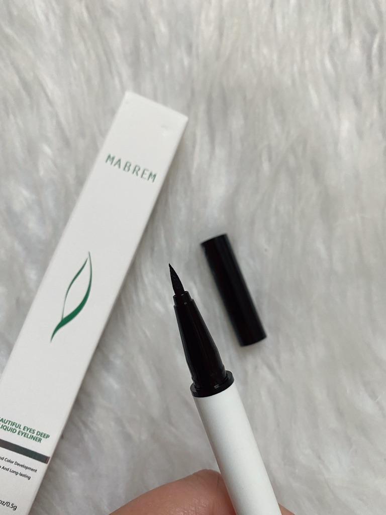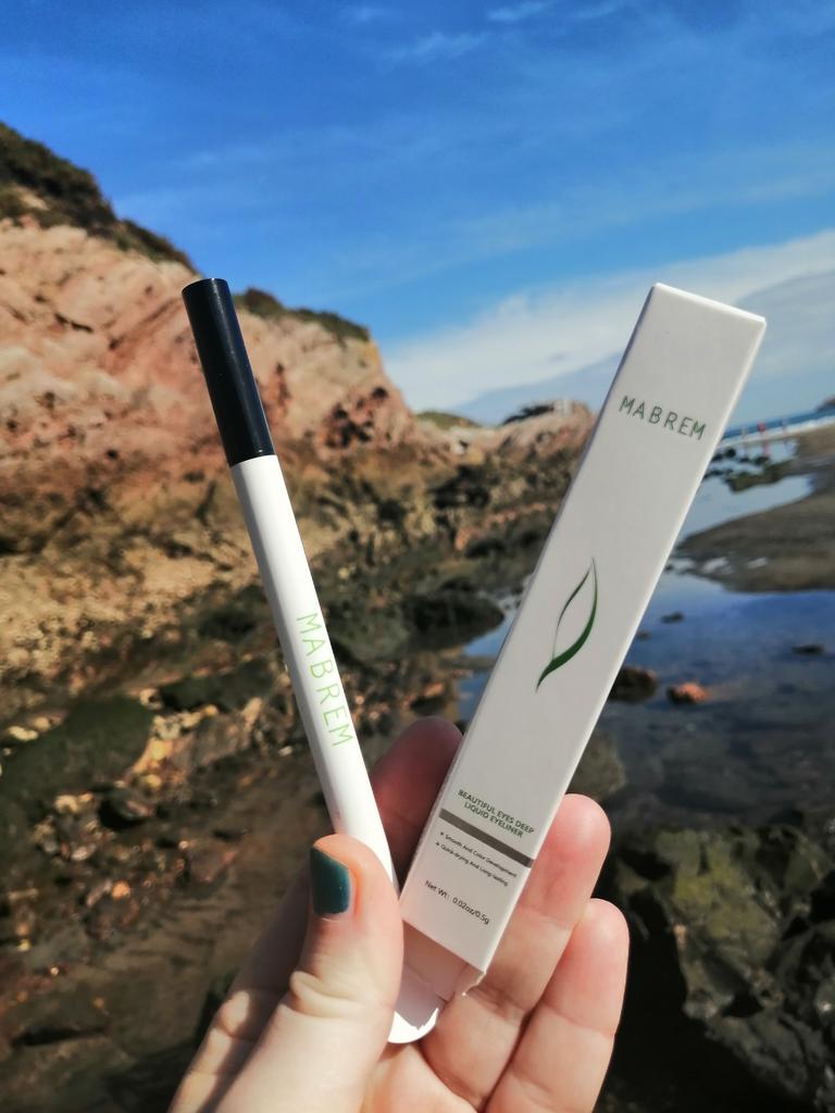 Beautiful Eyes Deep Liquid Eyeliner da Mabrem Delineador super bonito e acima de tudo de filigrana, preto bonito e profundo, ótima ponta que não é muito grossa nem muito fina. O delineador é fácil de aplicar, não arde e não borra. É levemente cintilante. Mas não incomoda. Se você está procurando por um bom delineador a um preço baixo, Mabrem é o lugar para você.