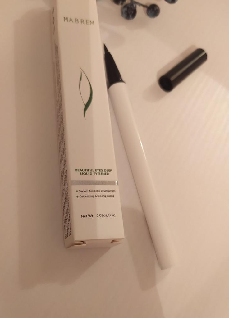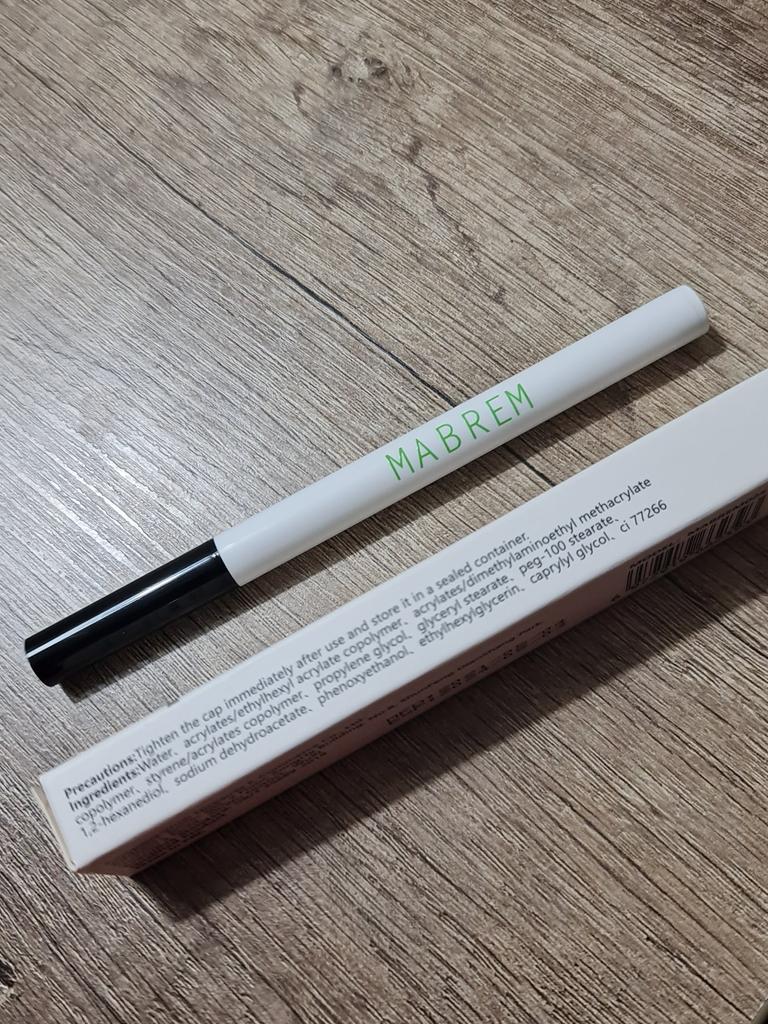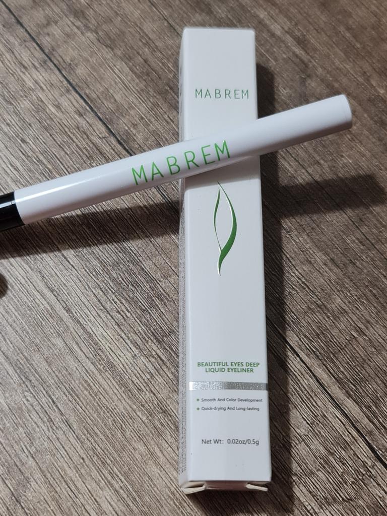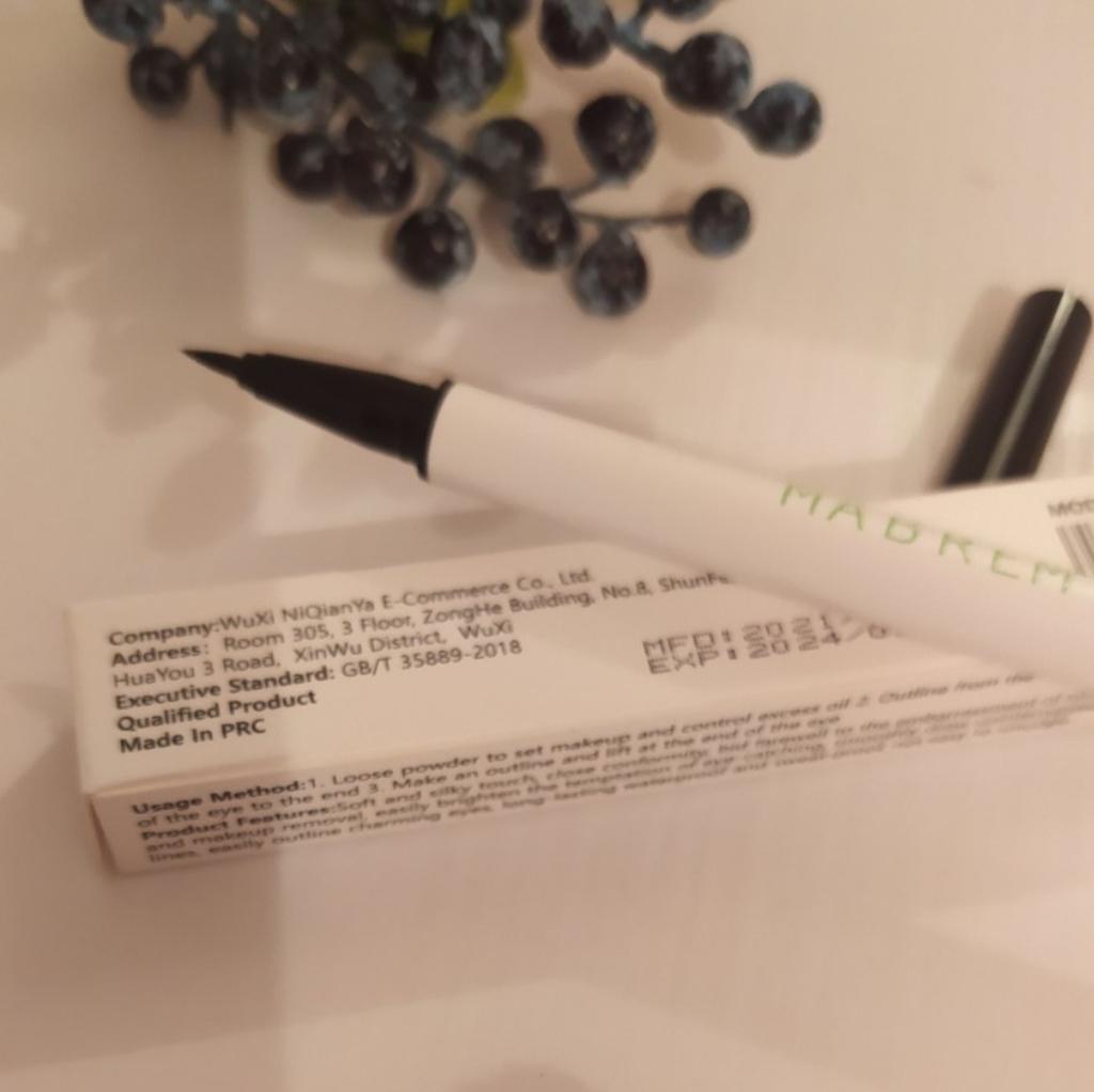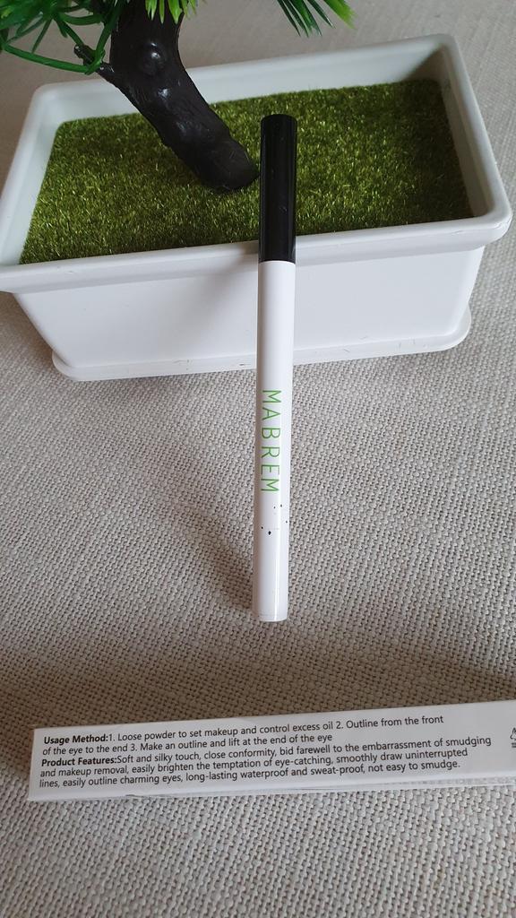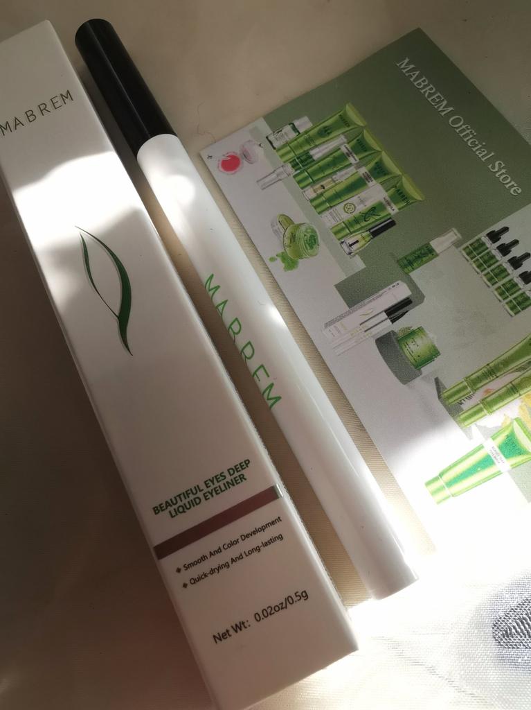 Delineador à prova d'água da #Mabrem. O delineador é de altíssima qualidade feito em forma de cabo com pincel, fácil de aplicar, a cor é saturada, é possível lavá-lo apenas com água micelar ou com detergente. A linha é fina, bem aplicada e não solta. Não tive alergias, vermelhidão ou irritação, posso recomendá-lo com segurança. A qualidade é excelente, nada difere das pulseiras super caras. Estou muito feliz por tê-lo adquirido. Obrigado à loja pelo produto de qualidade.