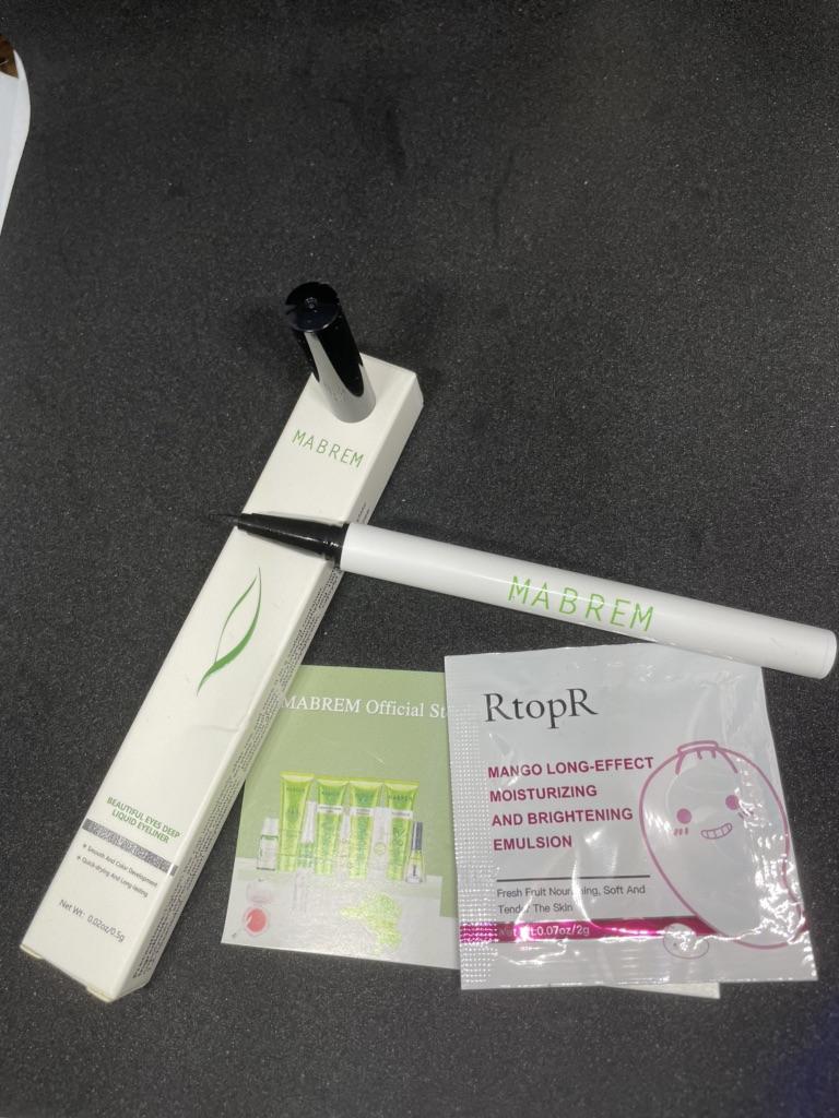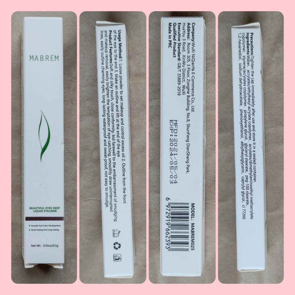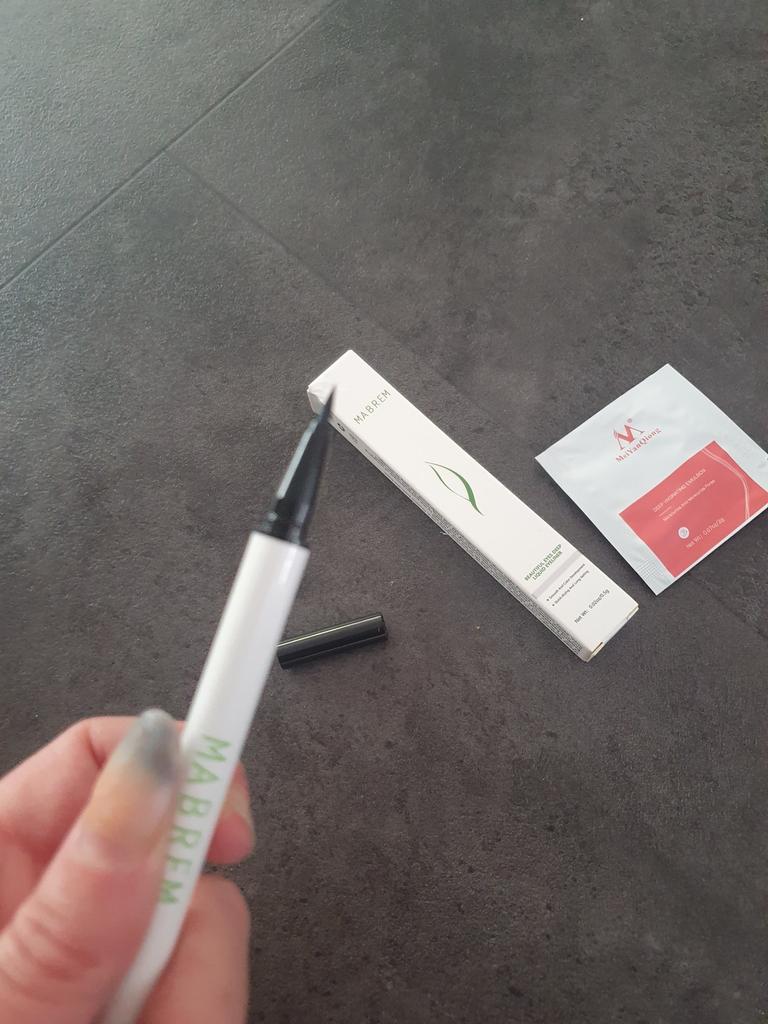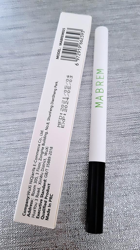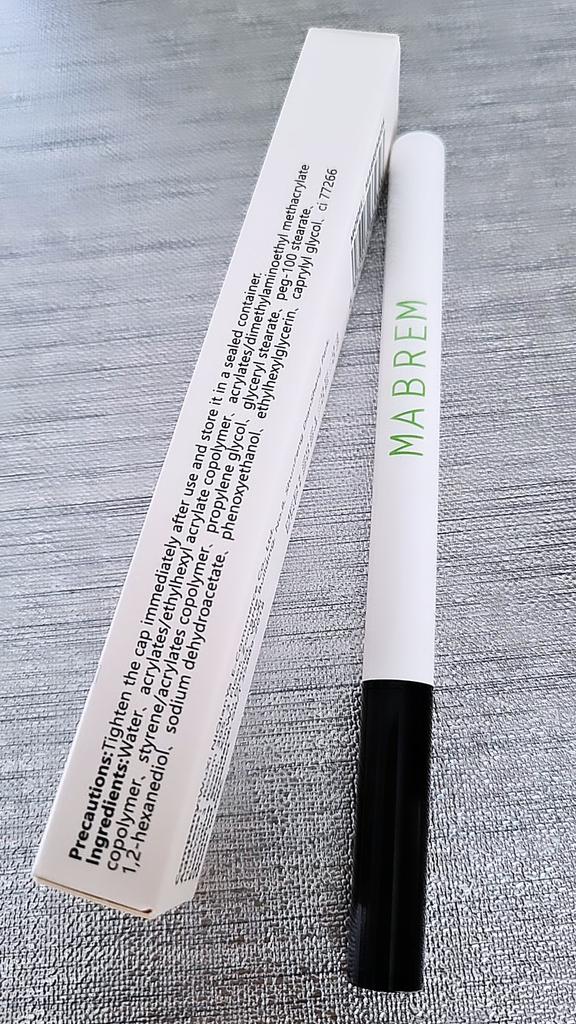 Delineador à prova d'água da #Mabrem. O delineador é de altíssima qualidade feito em forma de cabo com pincel, fácil de aplicar, a cor é saturada, é possível lavá-lo apenas com água micelar ou com detergente. A linha é fina, bem aplicada e não solta. Não tive alergias, vermelhidão ou irritação, posso recomendá-lo com segurança. A qualidade é excelente, nada difere das pulseiras super caras. Estou muito feliz por tê-lo adquirido. Obrigado à loja pelo produto de qualidade.