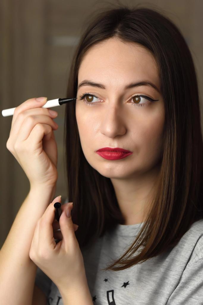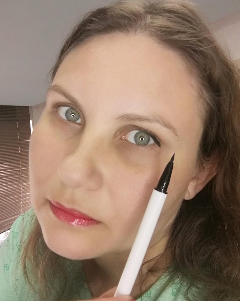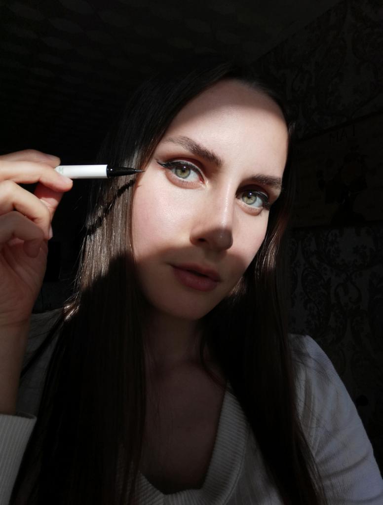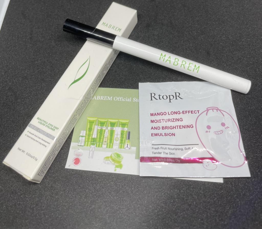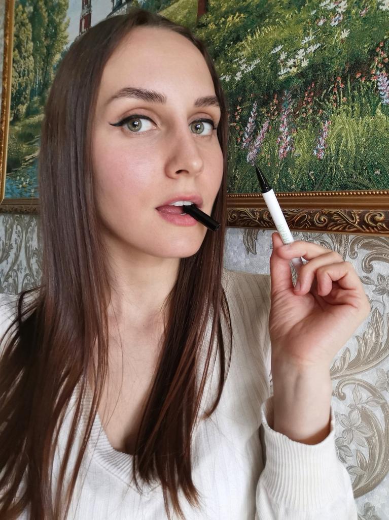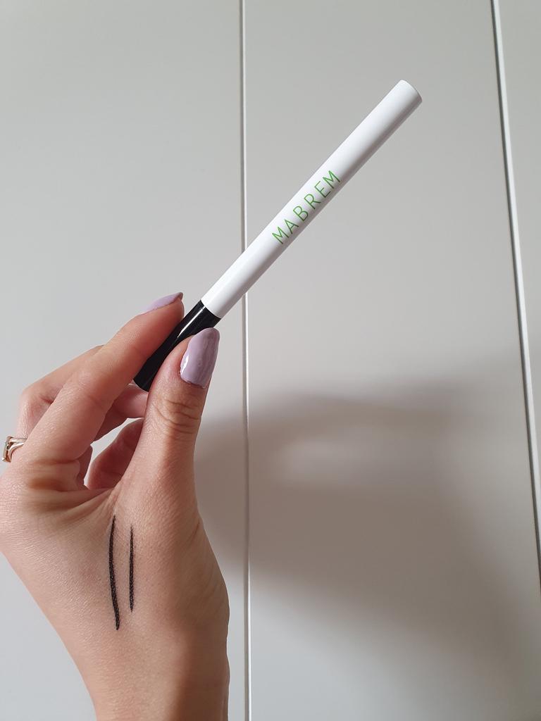 Delineador à prova d'água da #Mabrem. O delineador é de altíssima qualidade feito em forma de cabo com pincel, fácil de aplicar, a cor é saturada, é possível lavá-lo apenas com água micelar ou com detergente. A linha é fina, bem aplicada e não solta. Não tive alergias, vermelhidão ou irritação, posso recomendá-lo com segurança. A qualidade é excelente, nada difere das pulseiras super caras. Estou muito feliz por tê-lo adquirido. Obrigado à loja pelo produto de qualidade.