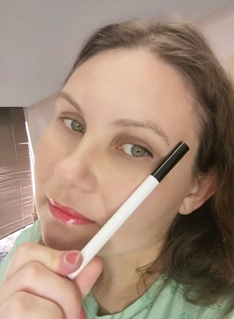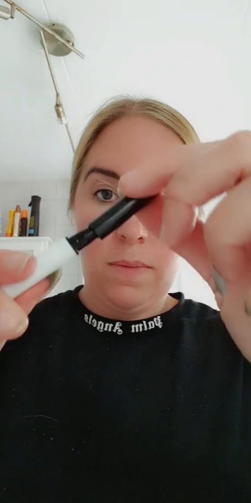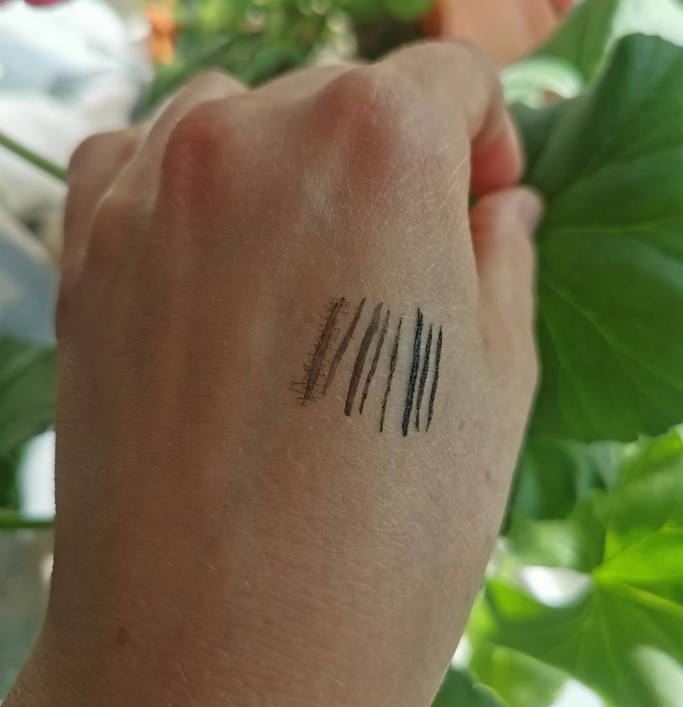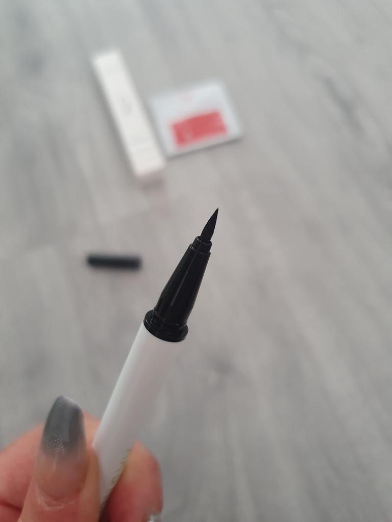 Belo lápis delineador. você pode criar uma linha fina, mas também uma linha mais grossa. indepenence o que você gosta de grosso ou fino. eu gosto no meio. você pode criar um olho de gato, mas também muitos outros modelos eu sempre faço uma linha básica. recebi em 2 semanas.