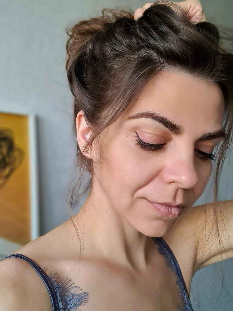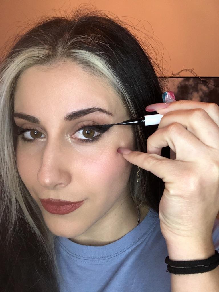 Não poderia deixar de testar um delineador sem o qual não vivo! Acho a aplicação super simples graças ao tamanho da ponta. A cor é super viva. E a duração é incrível, depois de um dia inteiro estava intacto! 🤍