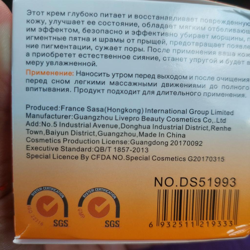 Coloquei 4 estrelas. -1 pela falta de película protetora sob a tampa, como garantia de que o creme é novo. Mas provavelmente foi assim que os fabricantes decidiram. E também não encontrei o prazo de validade no próprio frasco. A data é normal, mas está apenas na caixa. O cheiro a princípio parecia um pouco com "creme velho". Mas essa foi a primeira nota, assim que apliquei no rosto apareceu até uma nota cítrica) A textura em si: bem grossa, mas não gruda no dedo como se fosse escorregadia ao mesmo tempo. Entrega muito rápida, cerca de 2-2,5 semanas para a Polónia. Em geral, estou satisfeito. Nada a relatar sobre o resultado ainda. Acrescento: O creme está quase pronto, usei uns 3 meses, uma vez ao dia antes de dormir. Quanto ao resultado, não vejo mudanças significativas. Talvez o tom da pele tenha clareado um pouco, mas não tenho certeza. Talvez pareça, porque quanto às manchas da idade e às sardas, elas não foram a lugar nenhum e não clarearam. Em geral, o creme é agradável. Mas não comprarei novamente