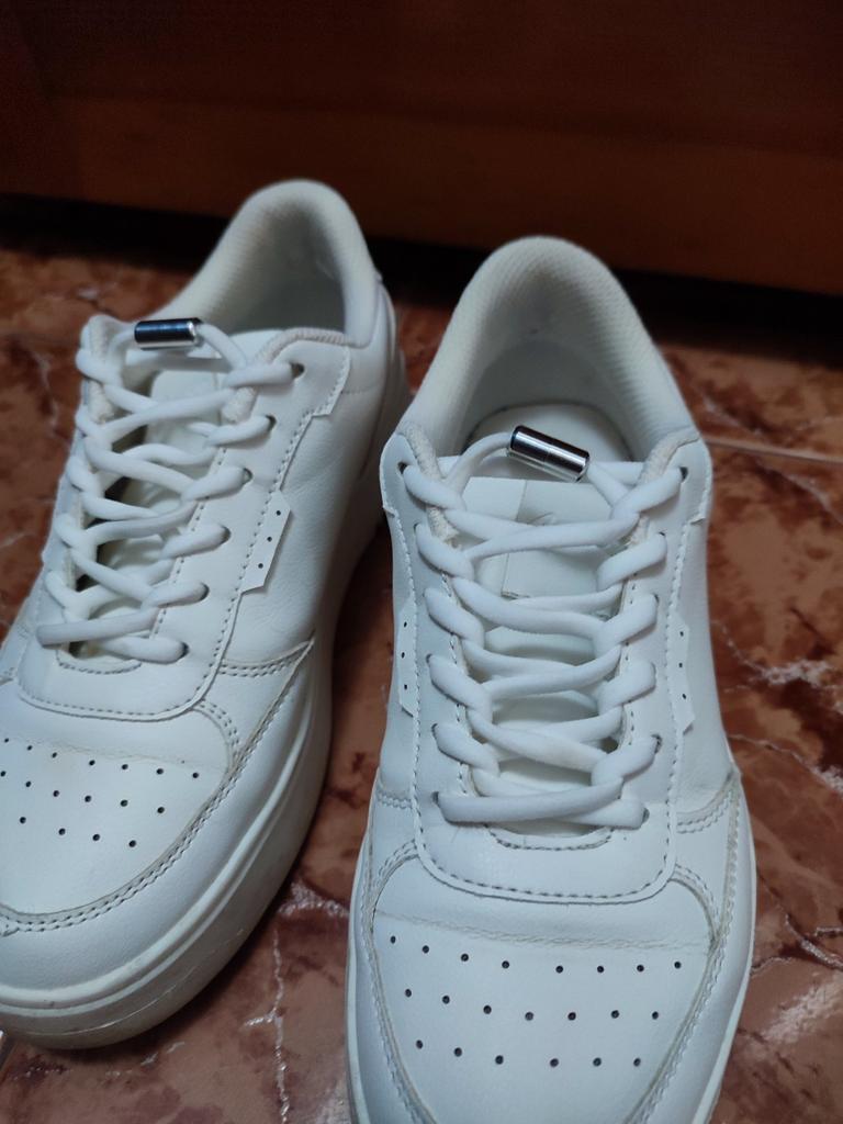 Muito legal. Agora os cadarços não saem. São elásticos e não precisa de os abrir sempre que calçar os sapatos. Vale a pena o dinheiro