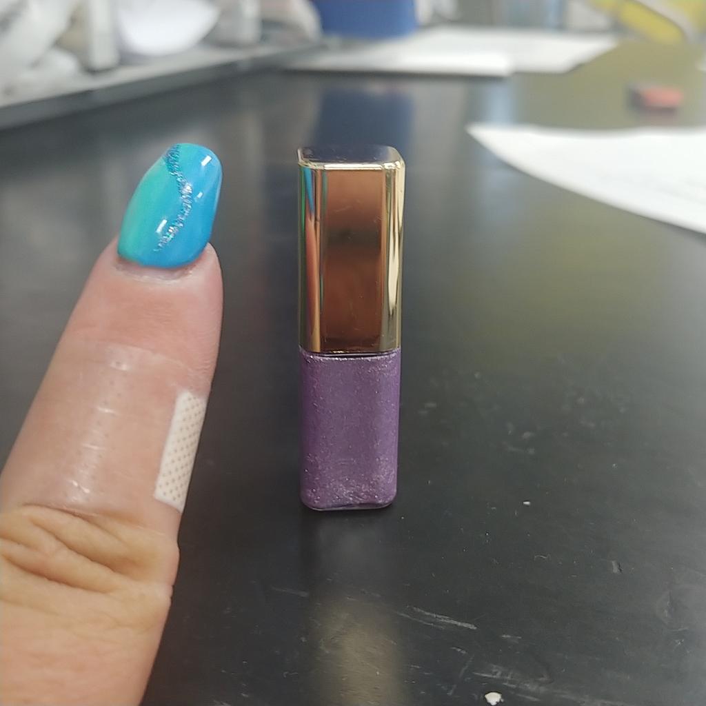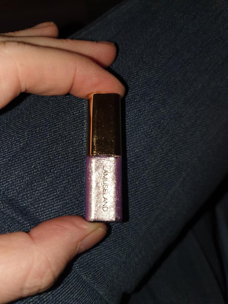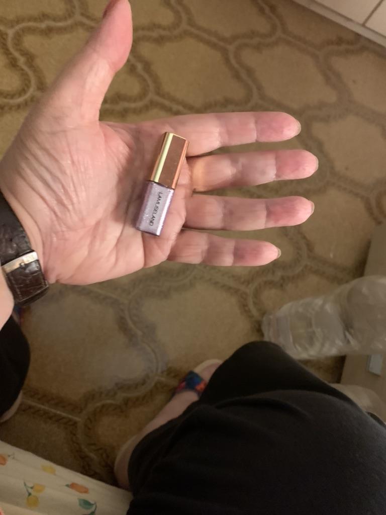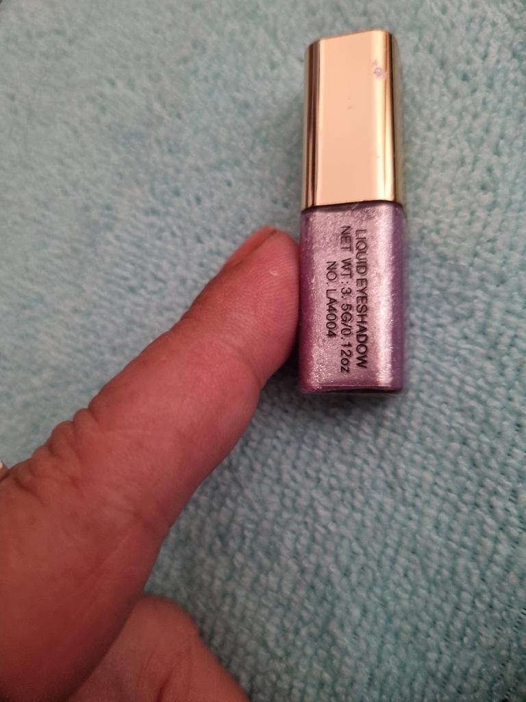 Um frasco bem pequeno de sombra lilás brilhante. 💜 Conteúdo cerca de 3 ml. 🪞 Ideal para distribuir e aguenta bem.👌 Foi entregue em um mês.🛬 Muito obrigado 🌹
