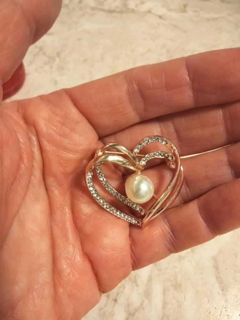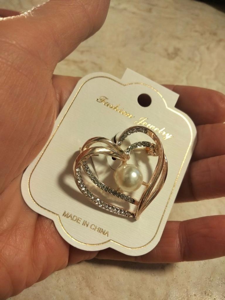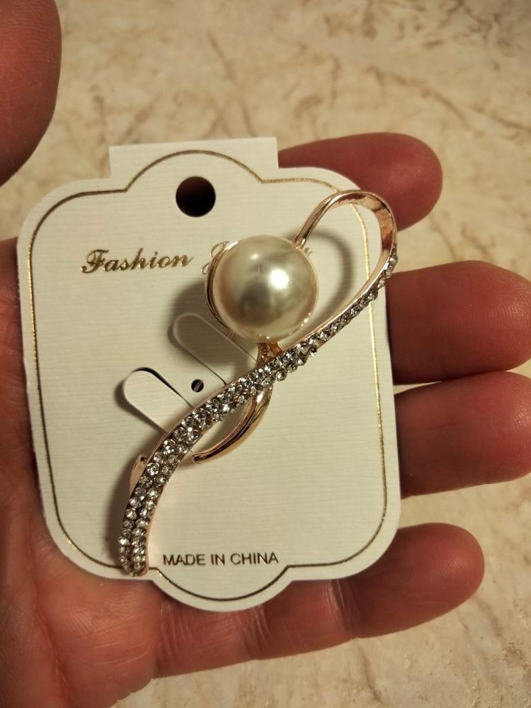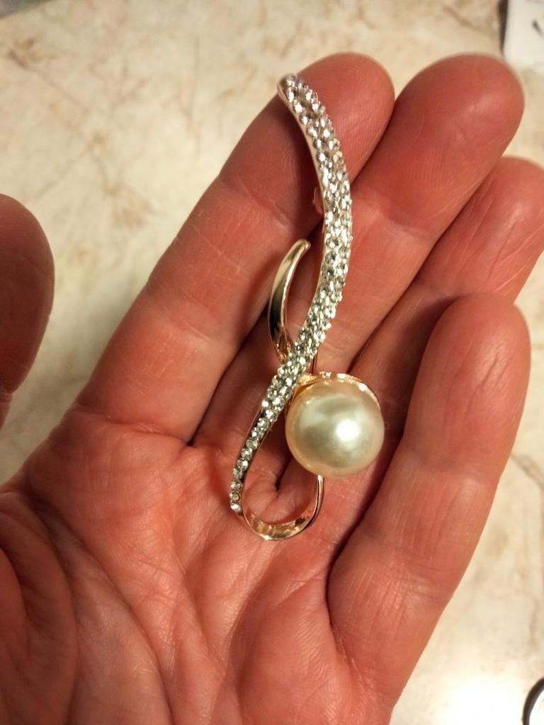 Broche - a própria elegância.Comprimento -7cm, largura, onde a pérola - 2cm.Jóias elegantes, elegantes. A qualidade é excelente. Gostei muito do broche. Graças ao vendedor e graças ao Joom.