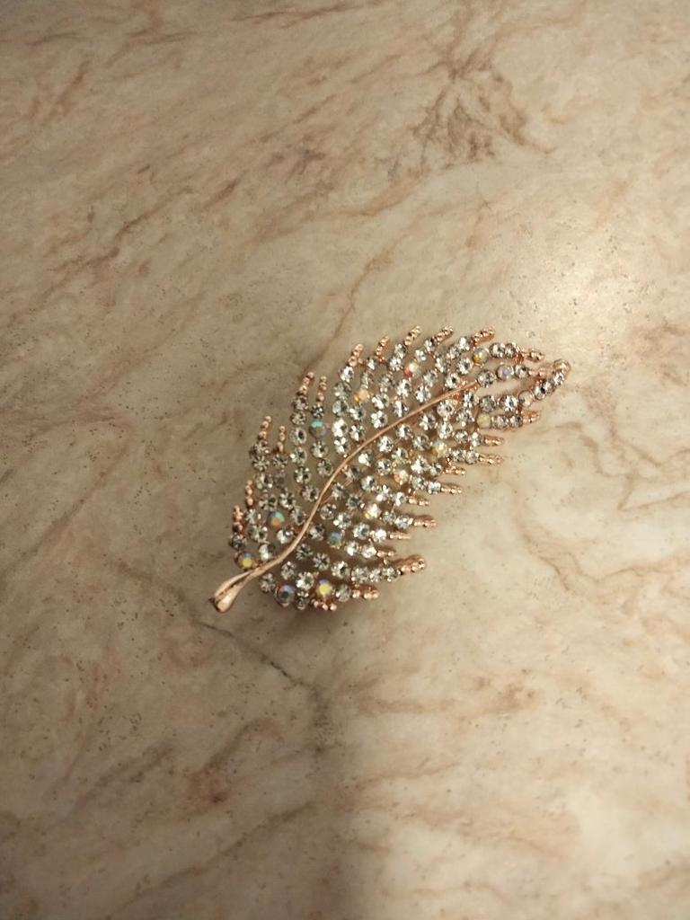 Broche luxuoso. Elegante, bonito - você não vai tirar os olhos. A qualidade é excelente. 7,2 cm de comprimento, 3,5 cm de largura no lugar maior. Gostei muito da decoração - um broche chique. Graças ao vendedor e graças ao Joom.