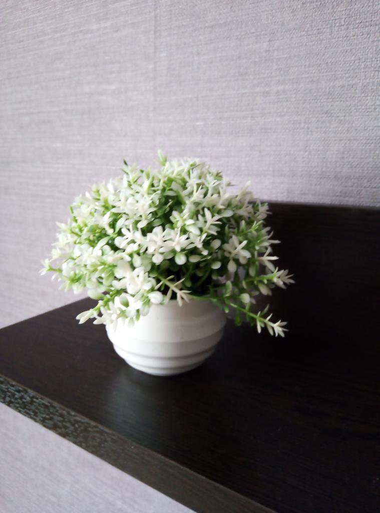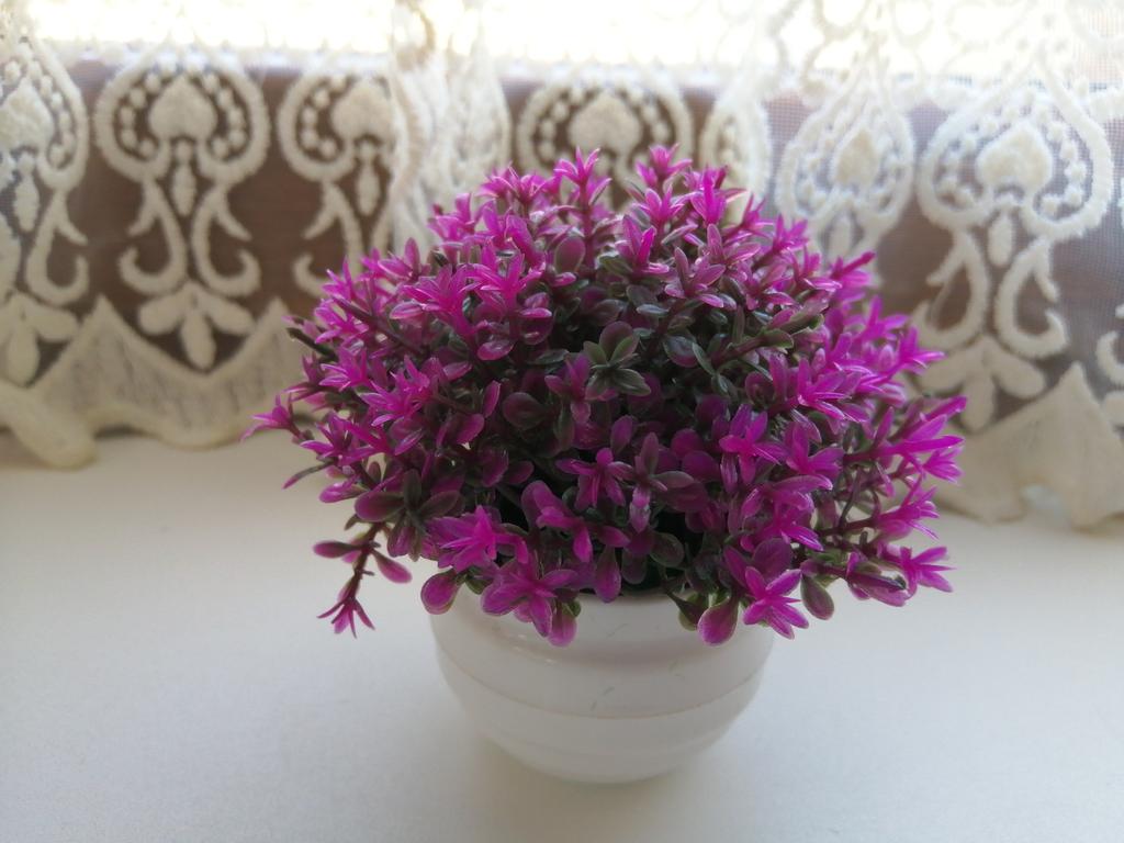 Flor decorativa pequena. 🤩🤩🤩🤩 Ficaria ótimo em uma pequena prateleira ou mesa . Pequeno, brilhante, compacto. Excelente qualidade pelo preço. Gosto da minha cor roxa, mas em geral há muitas cores para escolher. Tomei mais como decoração para uma foto. Mas coube perfeitamente na estante 🤗🤗🤗