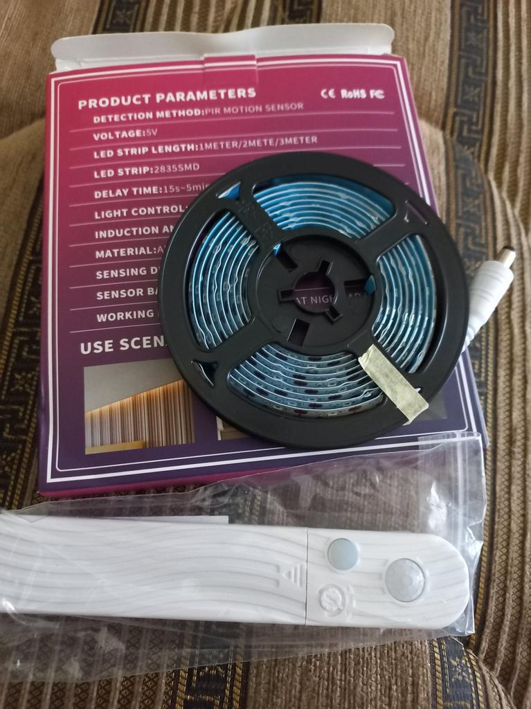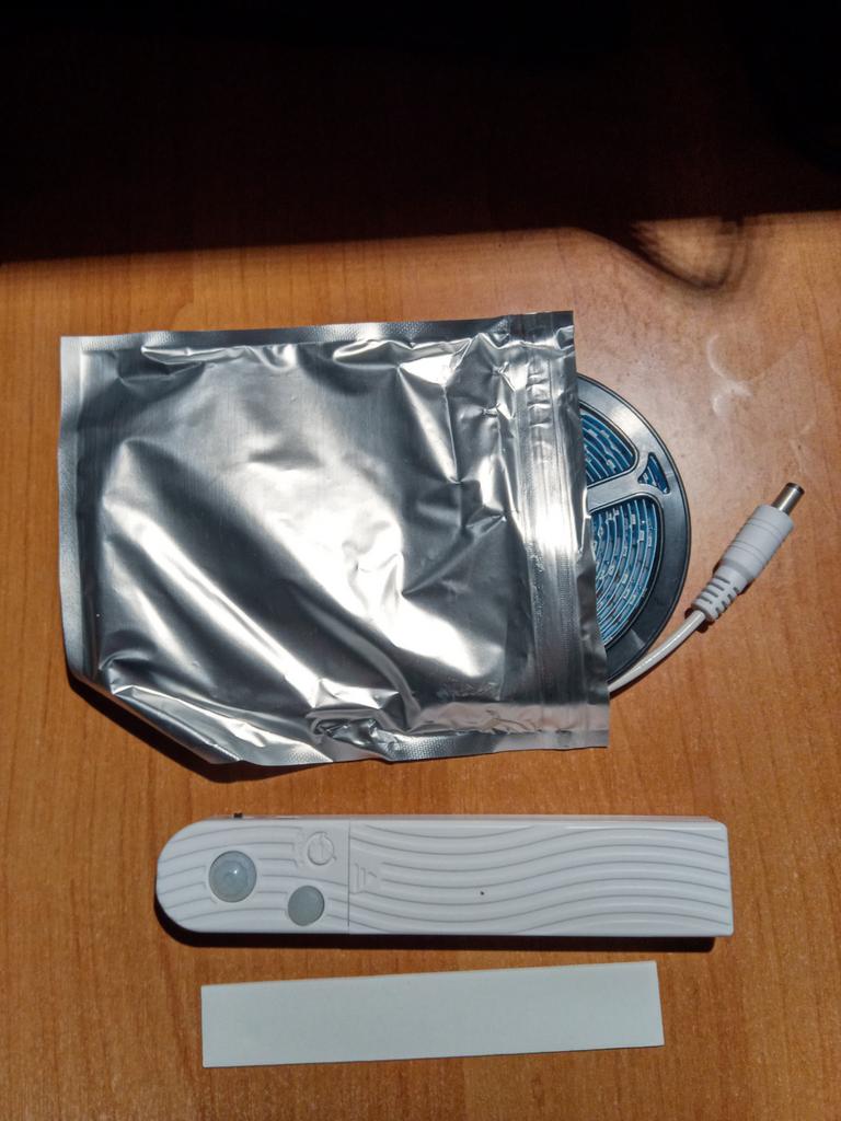 Coisa muito legal. Funciona a partir de 4 baterias "mini dedo", um banco de potência ou da rede. Possui um sensor de movimento, o que o torna muito conveniente de usar. Fita de alta qualidade, siliconizada. Definitivamente recomendo! Não foi rastreado na Ucrânia, chegou em um mês.