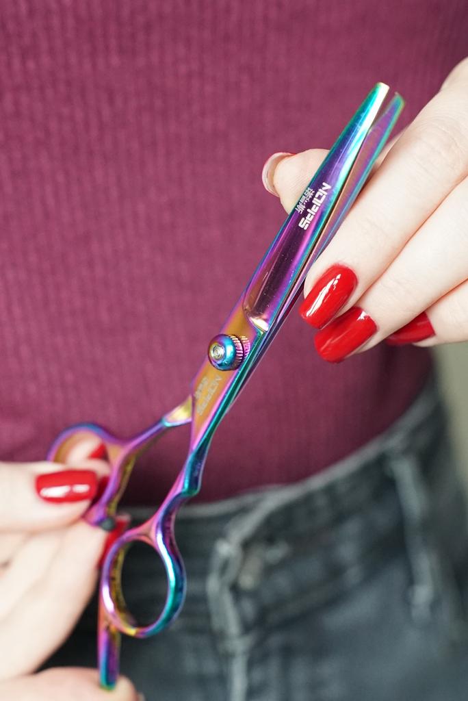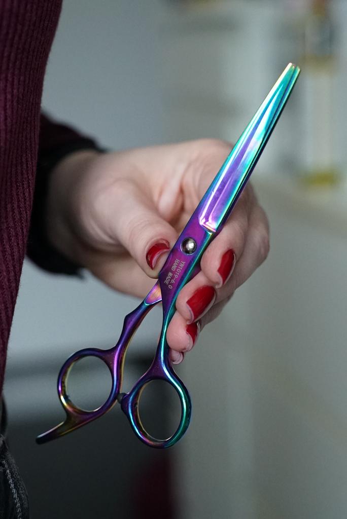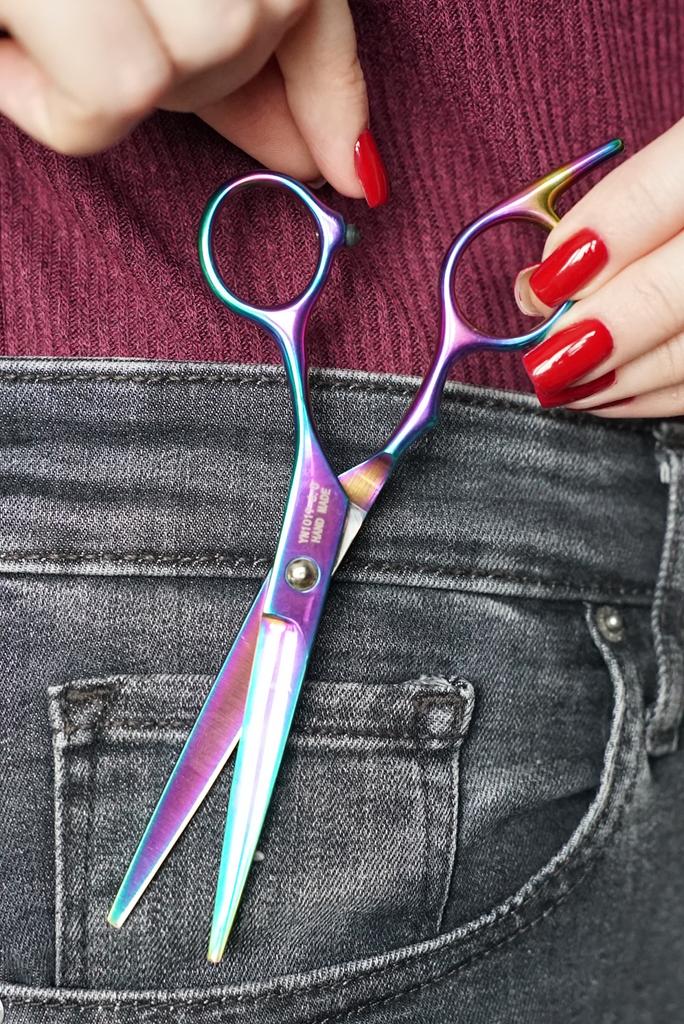A tesoura é boa para um cabeleireiro amador. A tesoura é afiada, a cor é linda. A tesoura é confortável de segurar, mas infelizmente não corta bem.