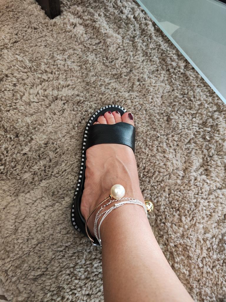 É linda, o material é de ótima qualidade, porém as pérolas não encaixam bem no tornozelo
